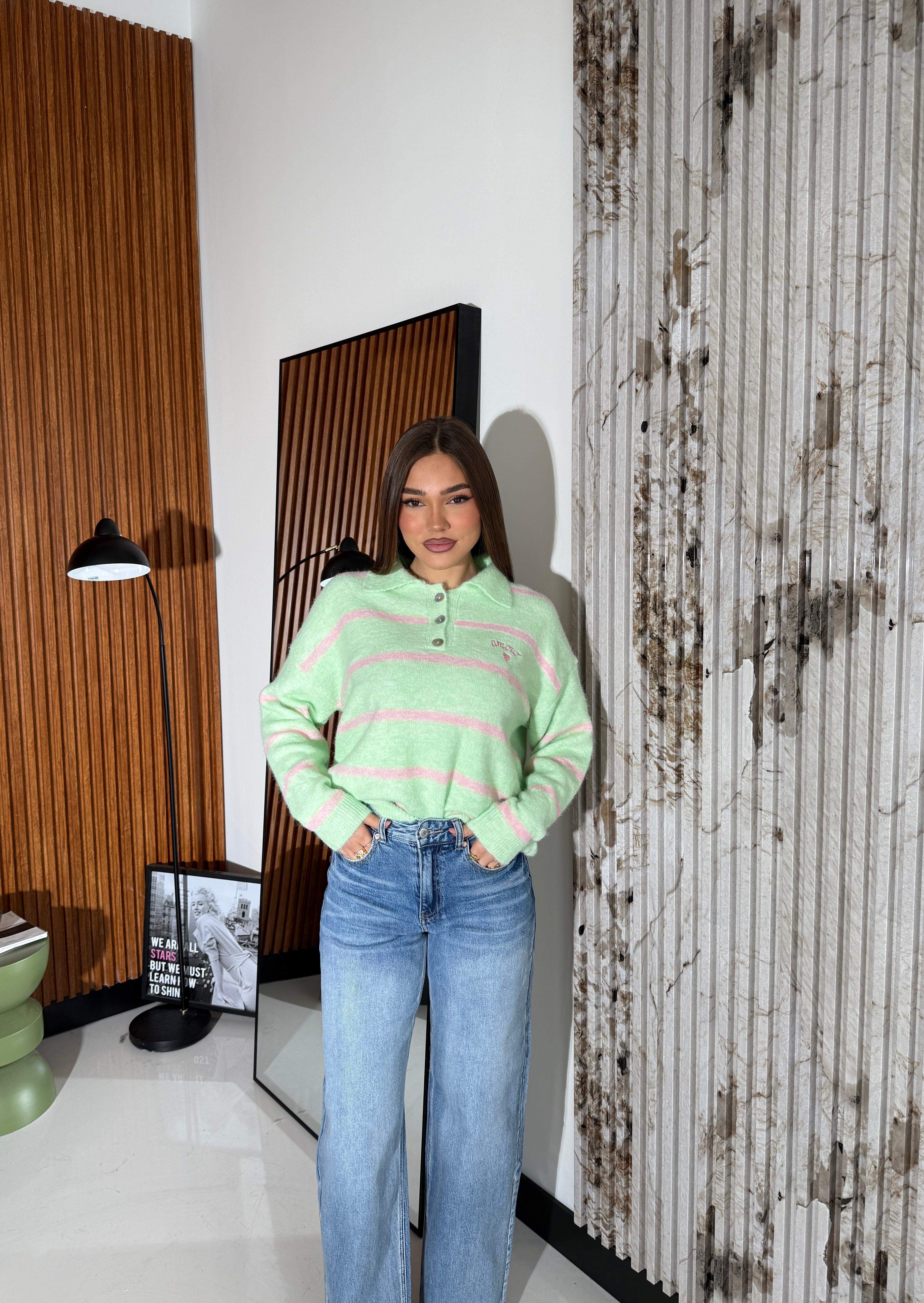 Maglioncino da donna in lana rasata e non pungente, con bottoncini apribili sul davanti e polsini. Modello oversize, vestirà bene fino ad una taglia L/XL. La modella è alta 1,65cm e pesa 52/53kg
