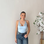 Bode in lycra, con bretelle regolabili, elastico sul retro, chiusura a laccetti sul retro del collo e dettagli in pizzo. Taglia unica, tessuto elasticizzato, veste bene fino ad una taglia M piena. La modella è alta 1,65 e pesa 52/53kg.