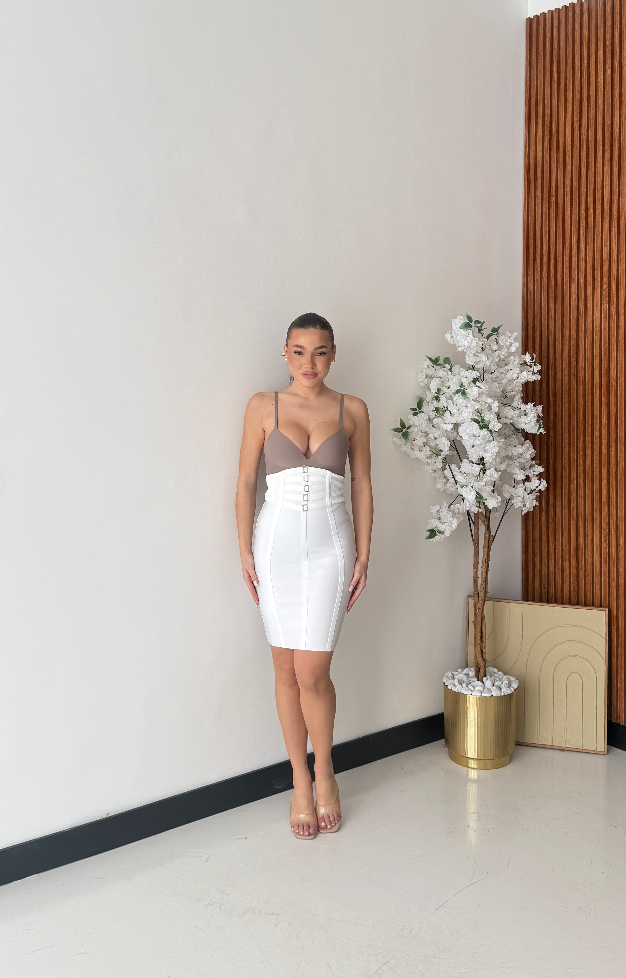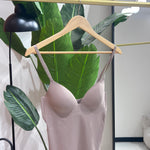 Body in lycra, contenitivo con coppa imbottita e bretelle regolabili. Veste regolarmente la propria taglia, la modella indossa taglia S ed è alta 1,65 e pesa 52/53kg.