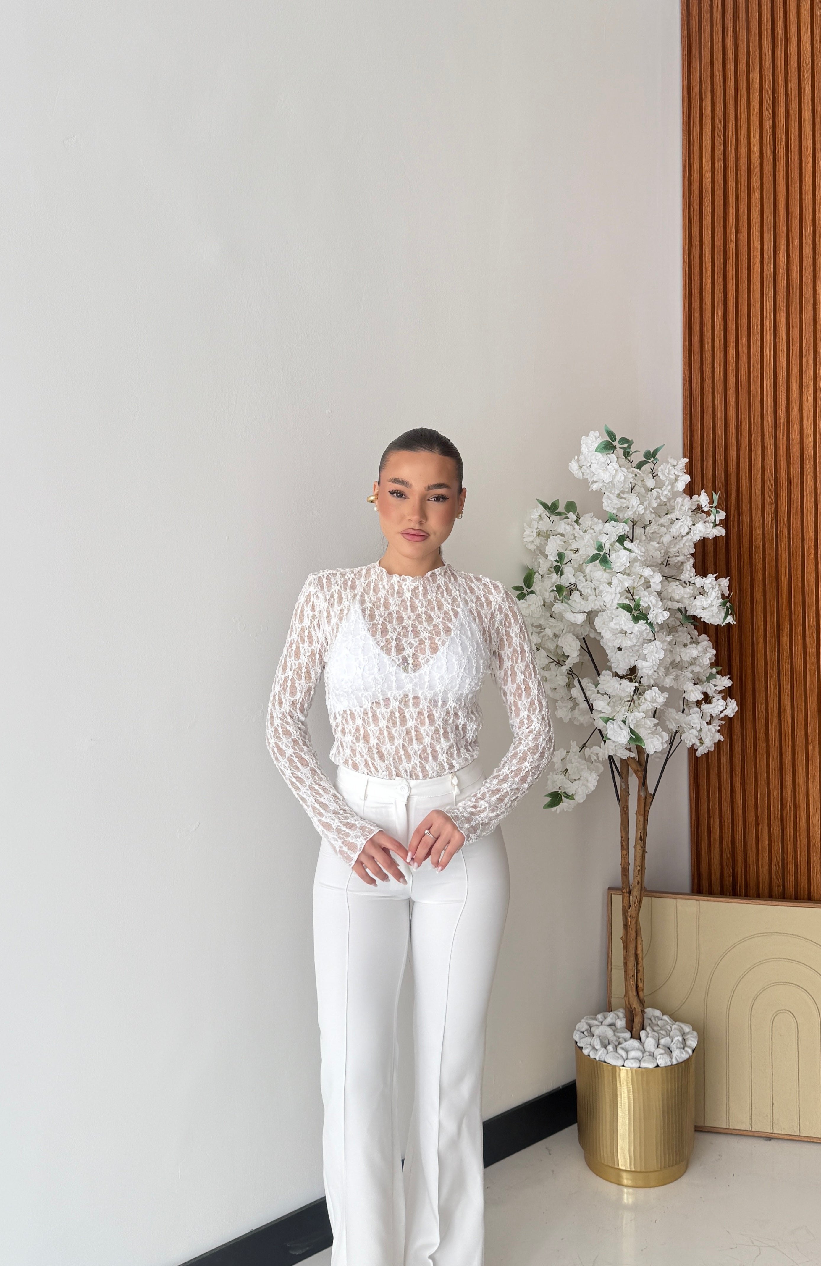 Body velato/ricamato. Taglia unica, tessuto elasticizzato, veste bene fino ad una taglia M/L. La modella è alta 1,65 cm e pesa 52/53 kg