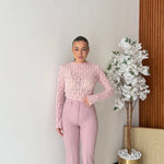 Body velato/ricamato. Taglia unica, tessuto elasticizzato, veste bene fino ad una taglia M/L. La modella è alta 1,65 cm e pesa 52/53 kg