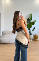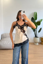 Canotta da donna over effetto raso con definitore in ricamo e veste bene fino ad una M/L