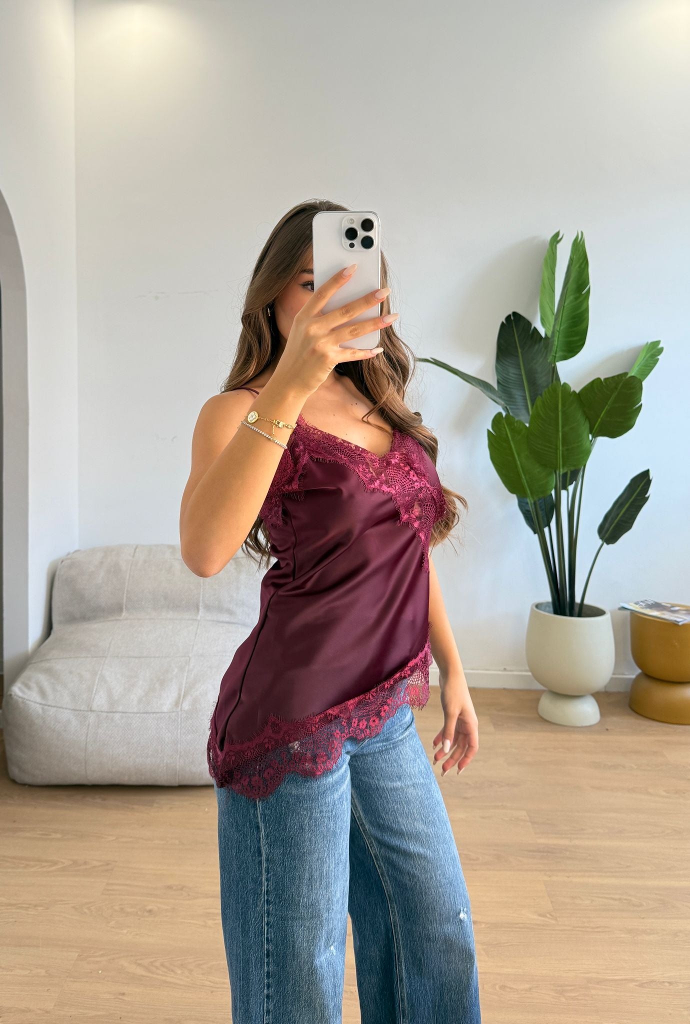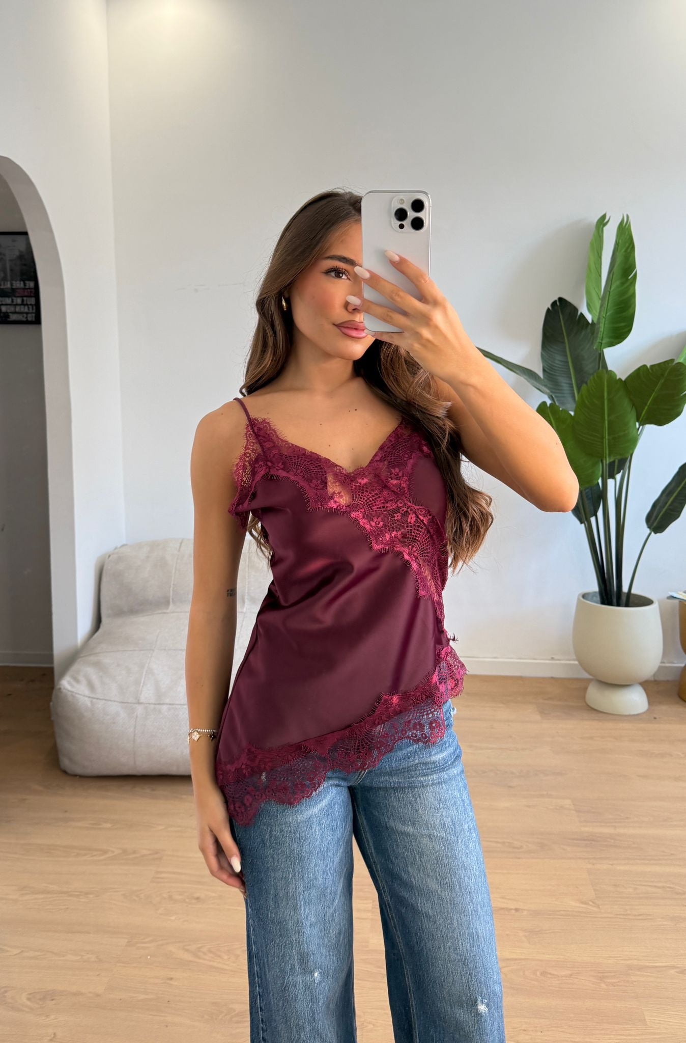 Canotta da donna over effetto raso con definitore in ricamo e veste bene fino ad una M/L
