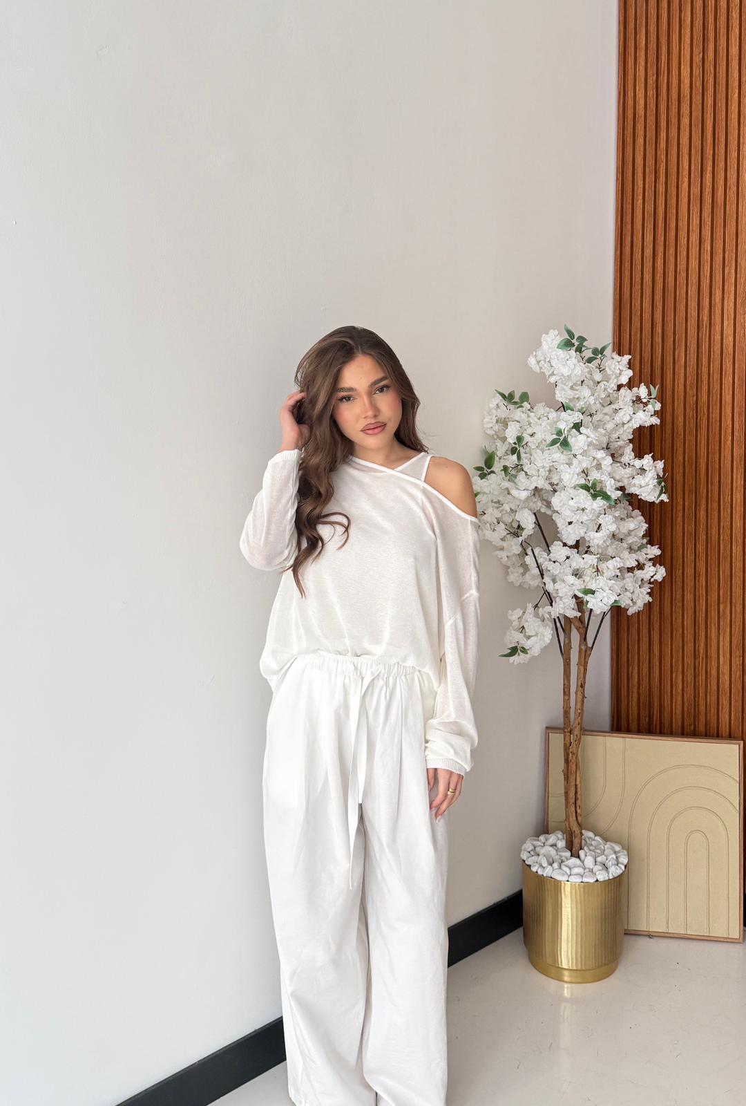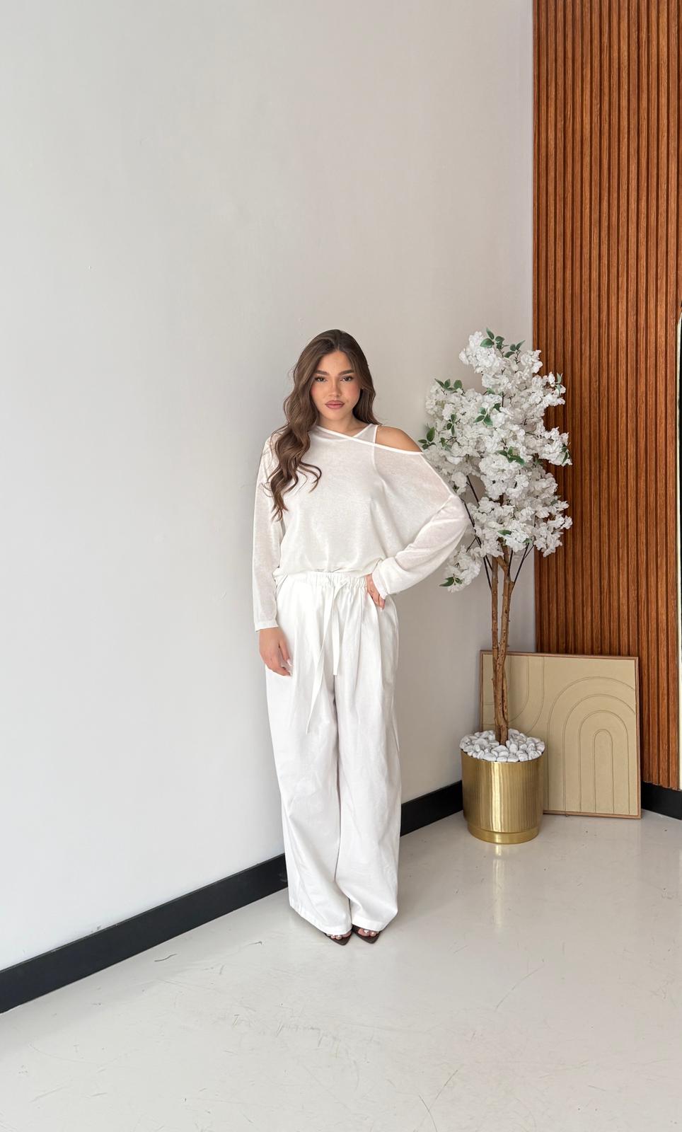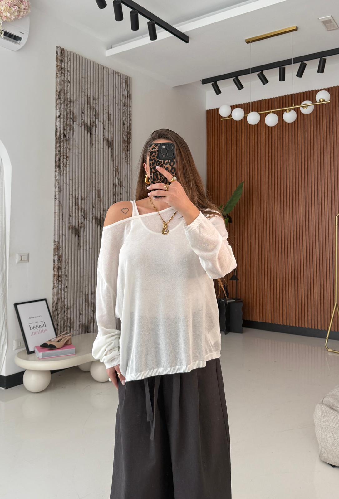Coord.set in cotone composto da top e maglia, con laccetto regolabile sullo scollo. Taglia unica, tessuto elasticizzato, veste bene fino ad una taglia M/L piena. La modella è alta 1,65 cm e pesa 52/53kg.