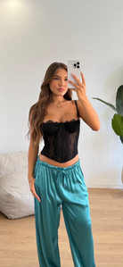 Corpetto da donna in pizzo con bretelle regolabili, ferretto sostenibili, stecche sul bustino e chiusura sul retro da reggiseno. Veste regolarmente la propria taglia e la modella in foto indossa taglia S