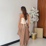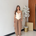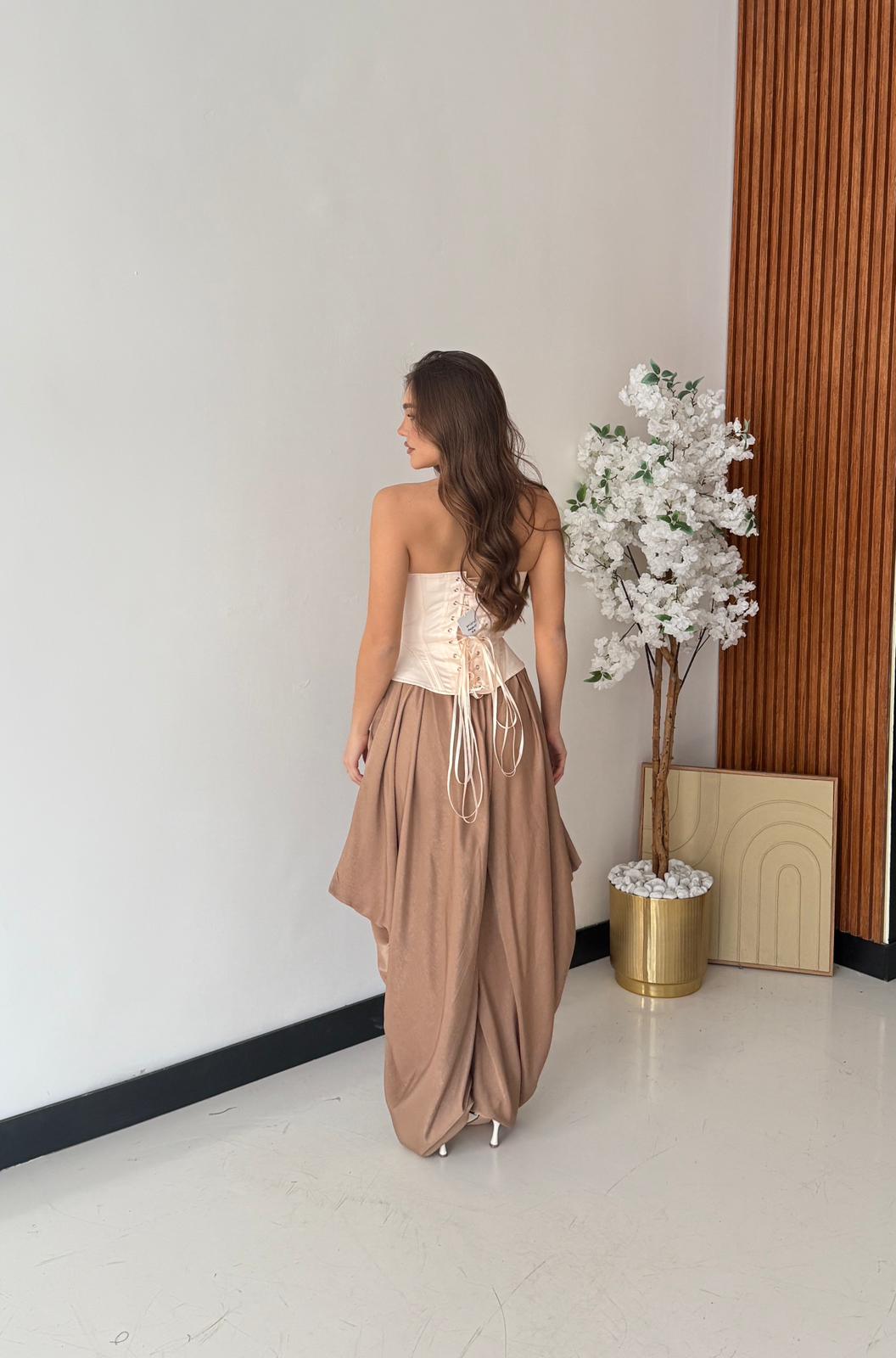 Corpetto da donna in raso con chiusura sul retro con laccio regolabile. Veste regolarmente la propria taglia, la modella indossa taglia S ed è alta 1,65 e pesa 52/53 kg.