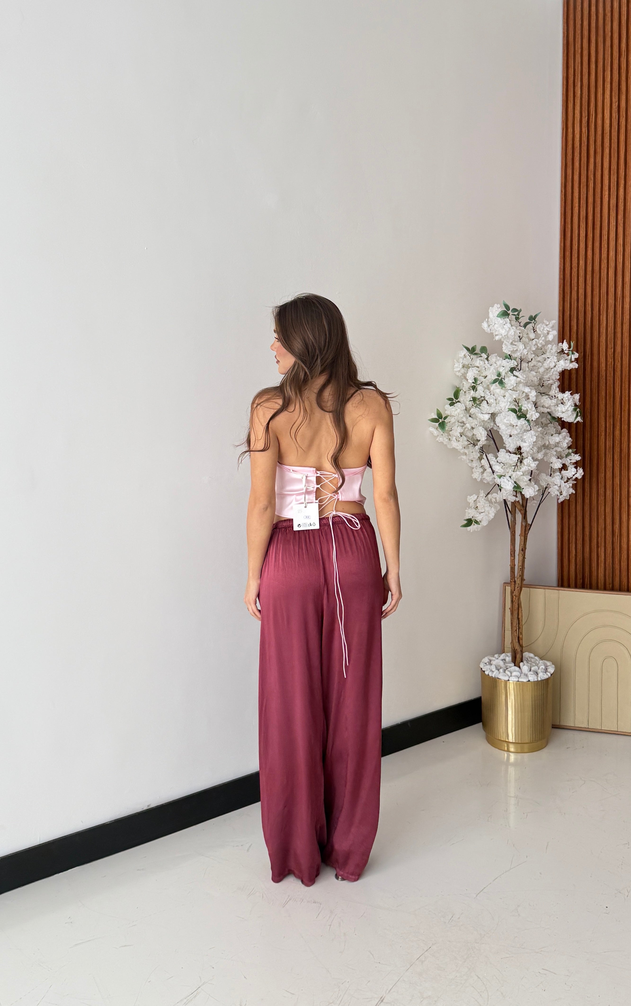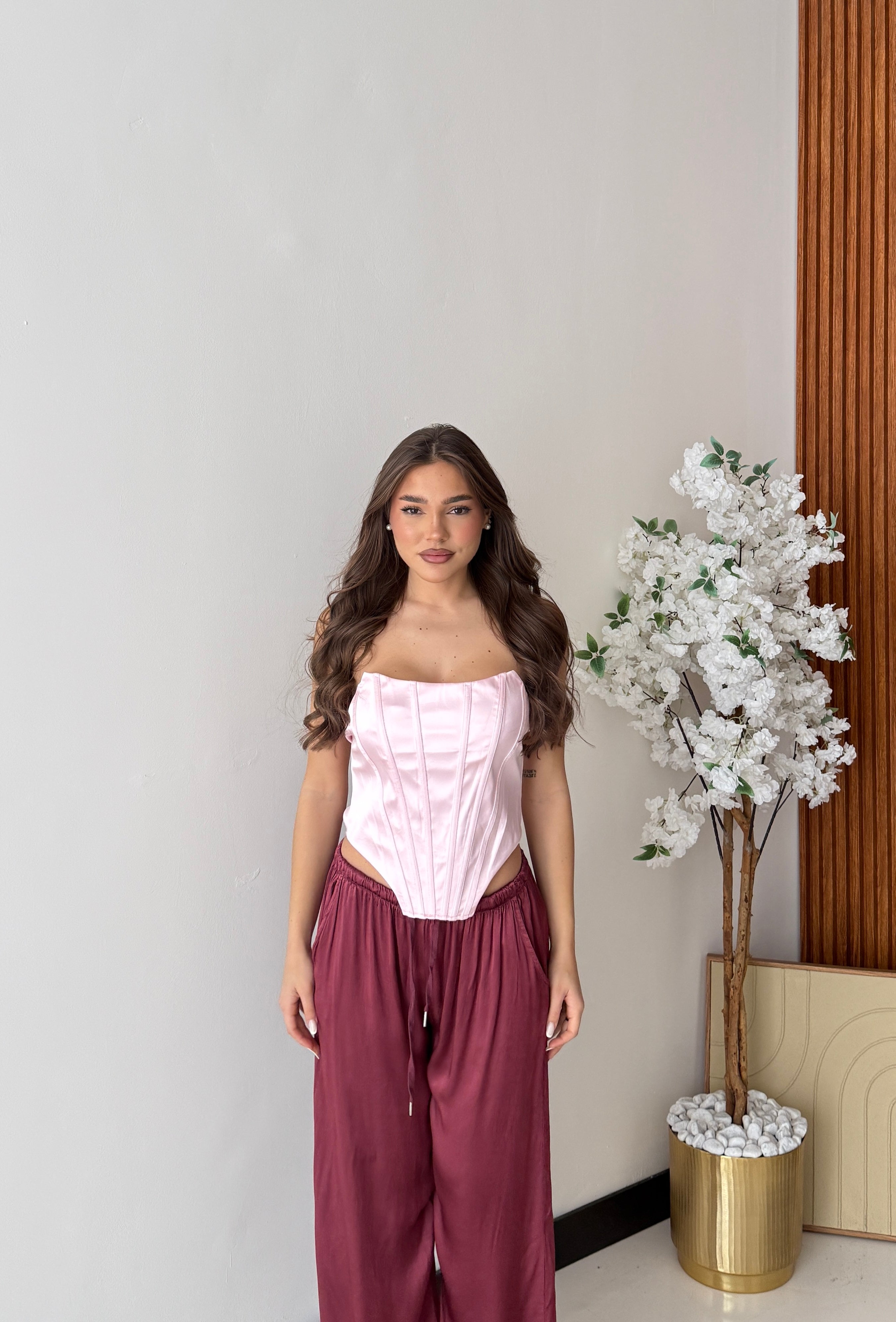 Corpetto da donna in raso con chiusura sul retro con laccetti  regolabile. Taglia unica, veste bene fino ad una taglia M/L piena. La modella è alta 1,65 e pesa 52/53 kg.