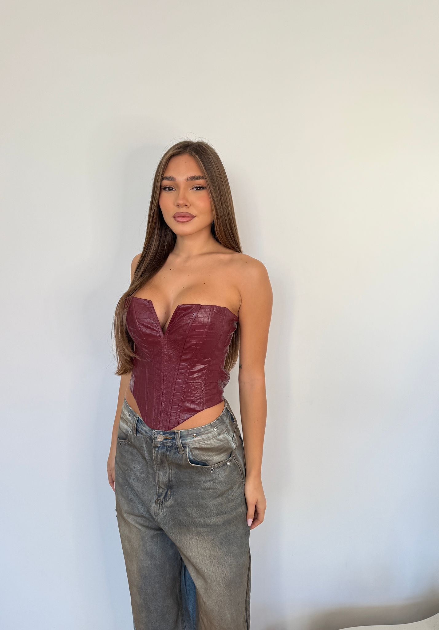 Corpetto da donna in ecopelle con stracciatura sul retro a intreccio con laccio regolabile e veste bene la propria taglia e la modella indossa taglia S/M
