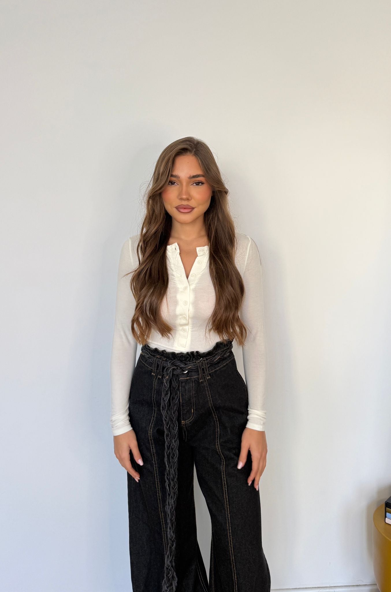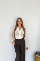 Maglia da donna in cotone con bottoncini sul davanti, tessuto elasticizzato e vestirà bene fino ad una M/L