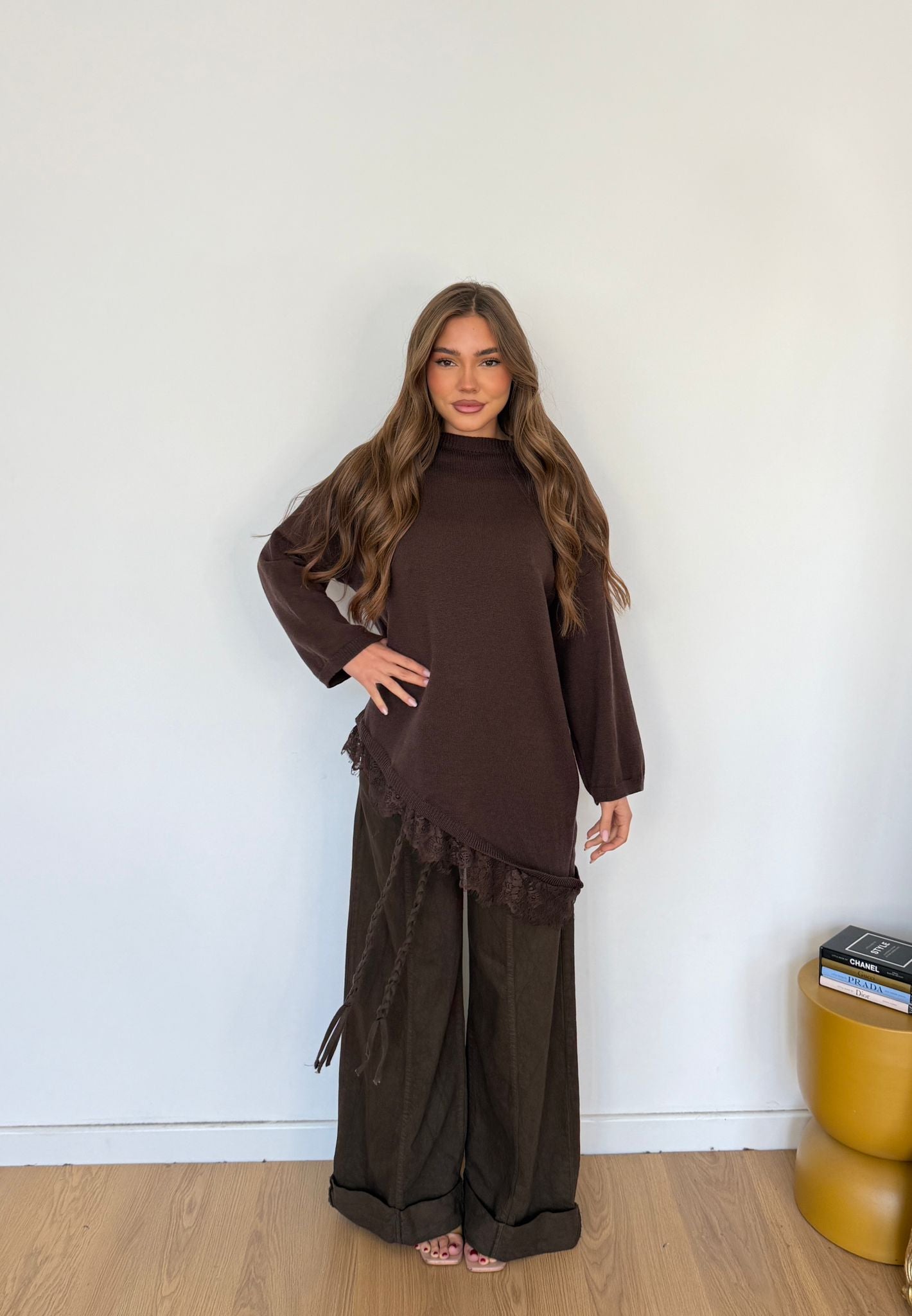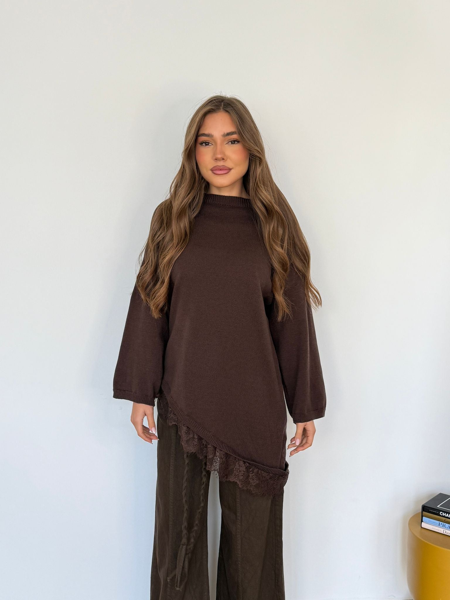 Maglia da donna in lana rasata con pizzo sul finale e vestirà bene fino ad una M/L piena