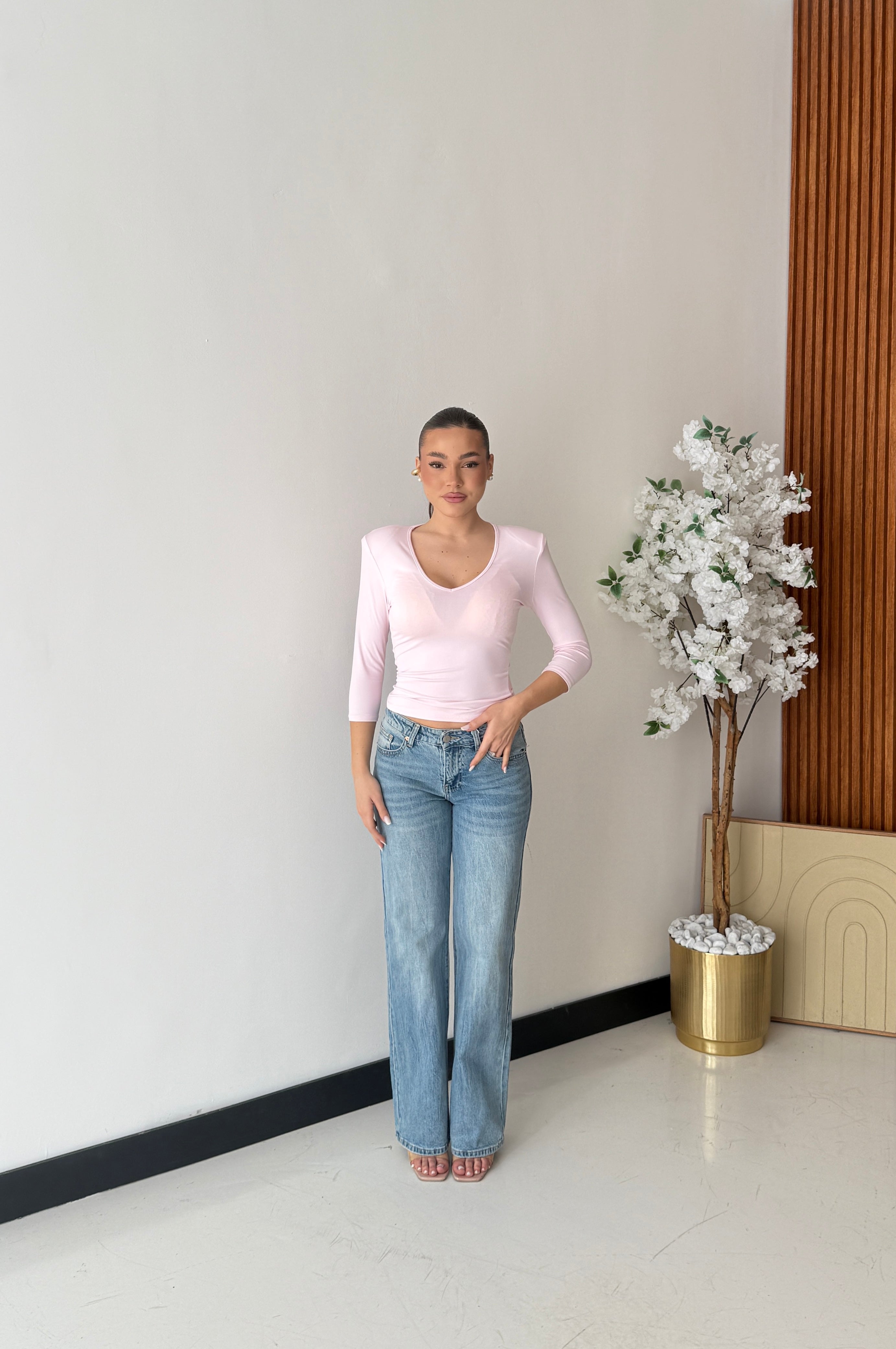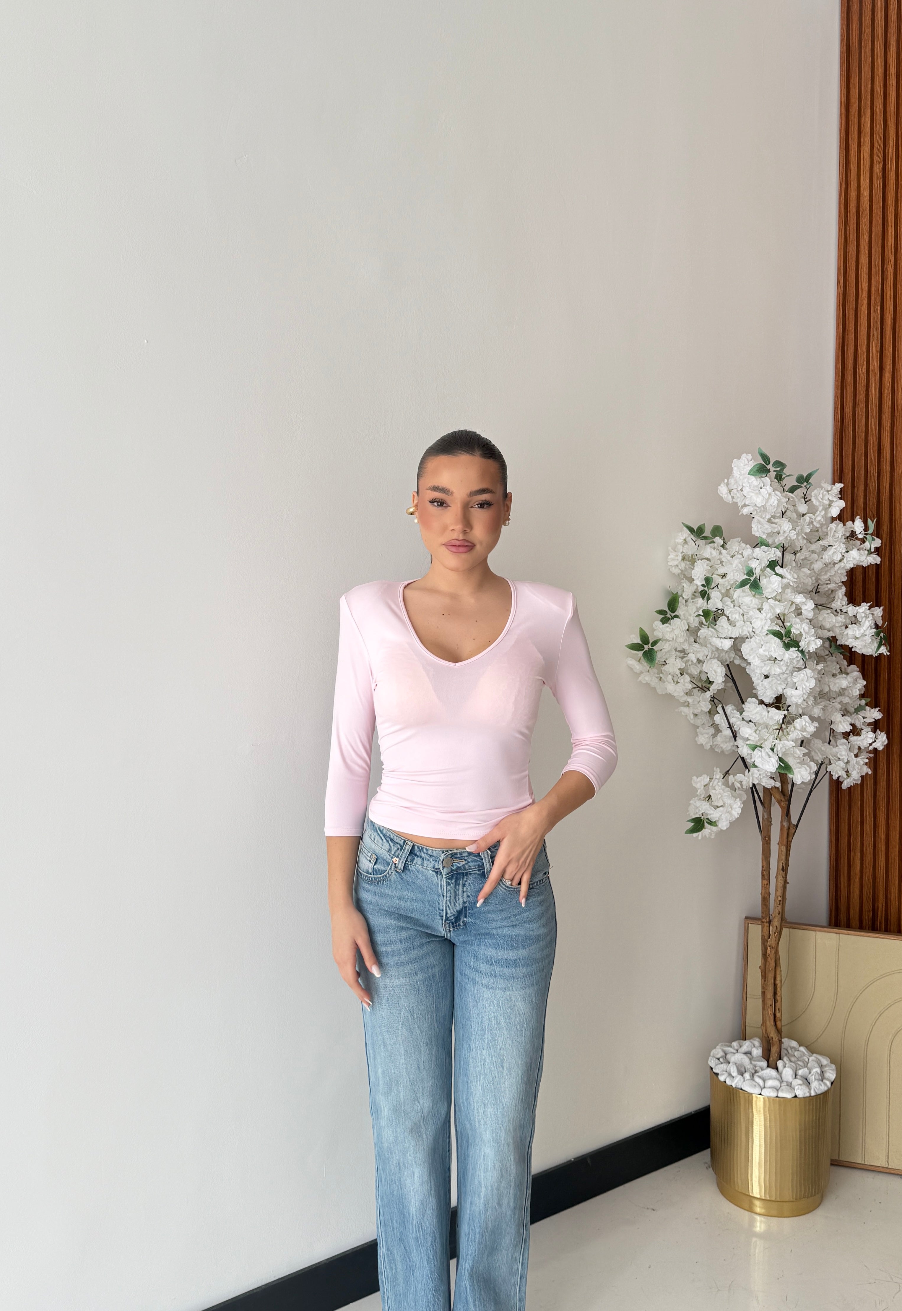 Maglia in lycra, con scollo a V e spalline imbottite. Taglia unica, tessuto elasticizzato, veste bene fino ad una taglia M/L. La modella è alta 1,65 cm e pesa 52/53 kg