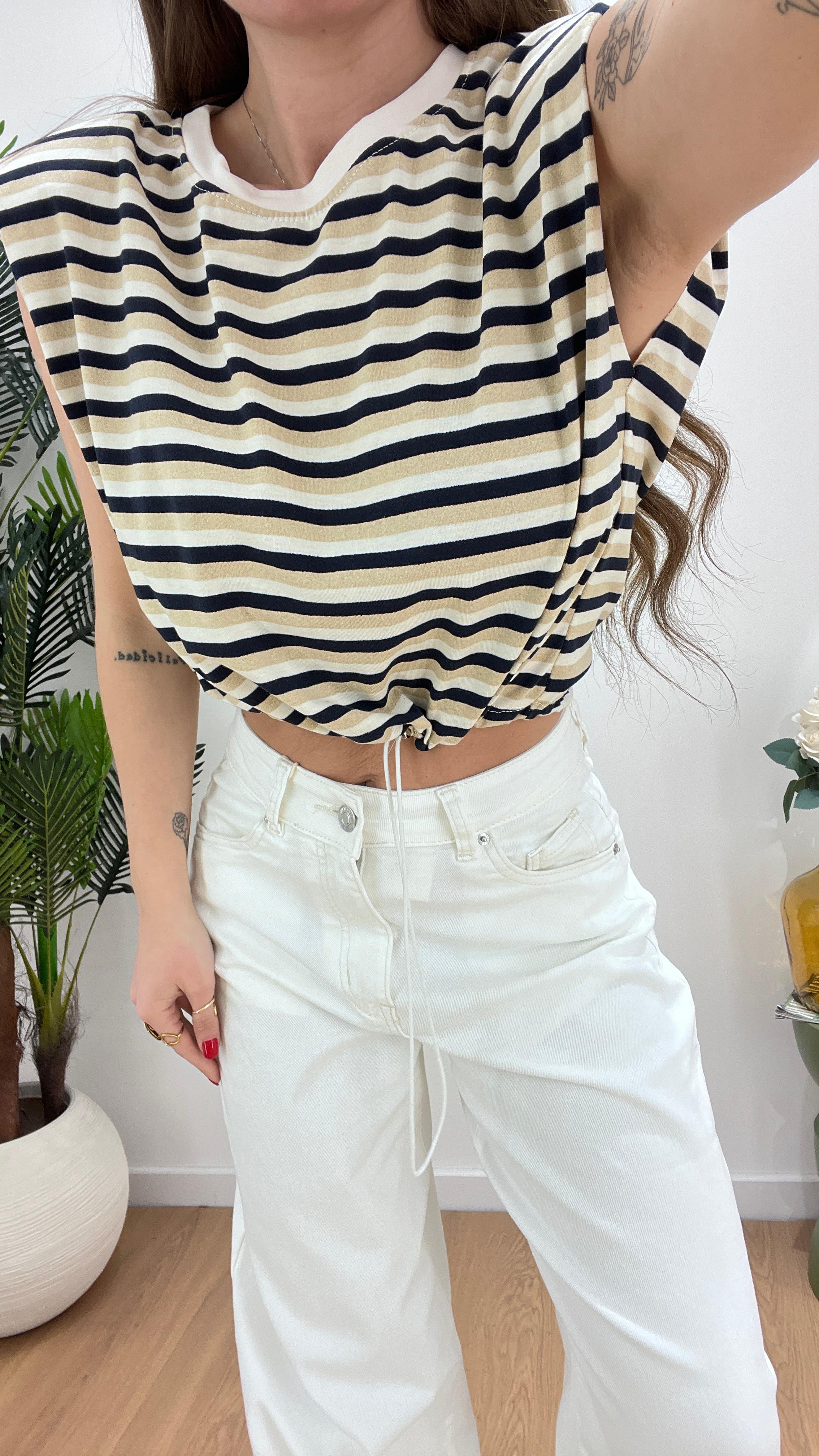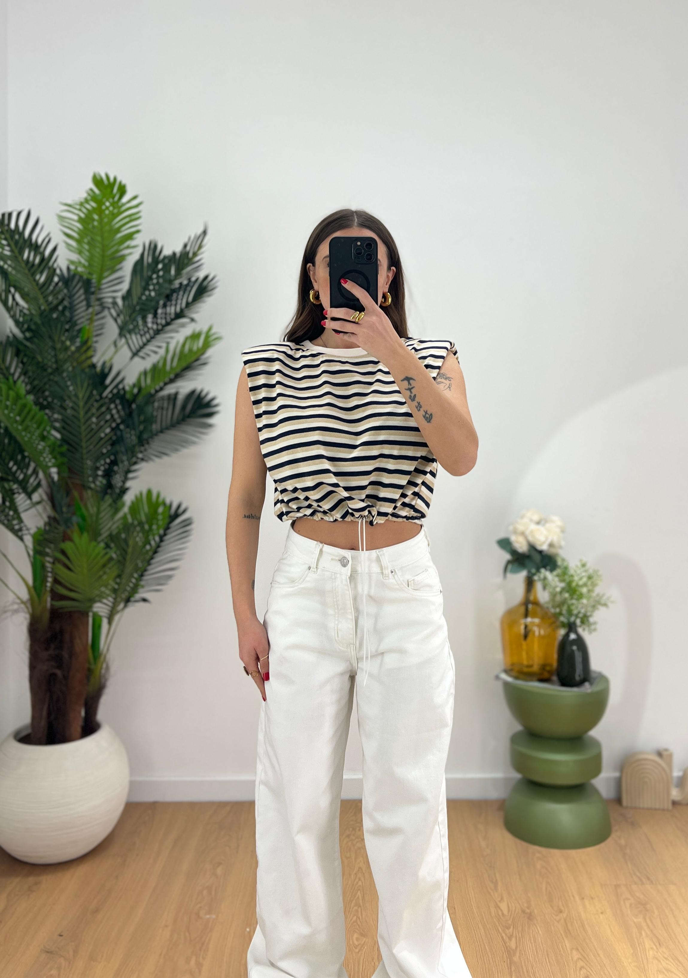 Shirt da donna crop con spalline imbottitee coulisse regolabile sul finale vestirà bene fino ad una M/L