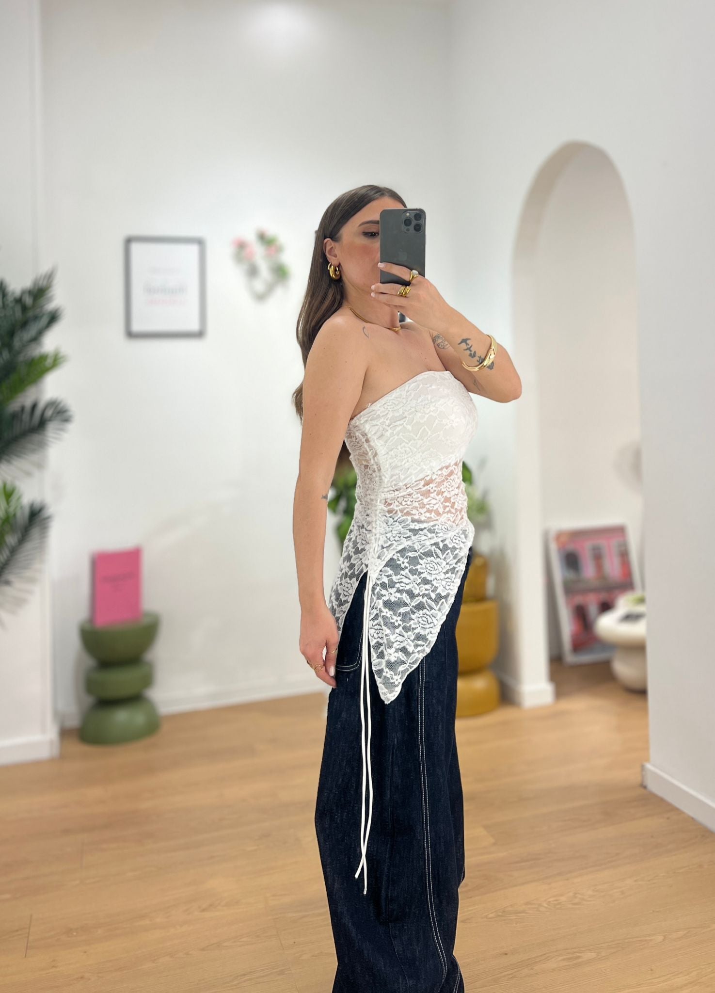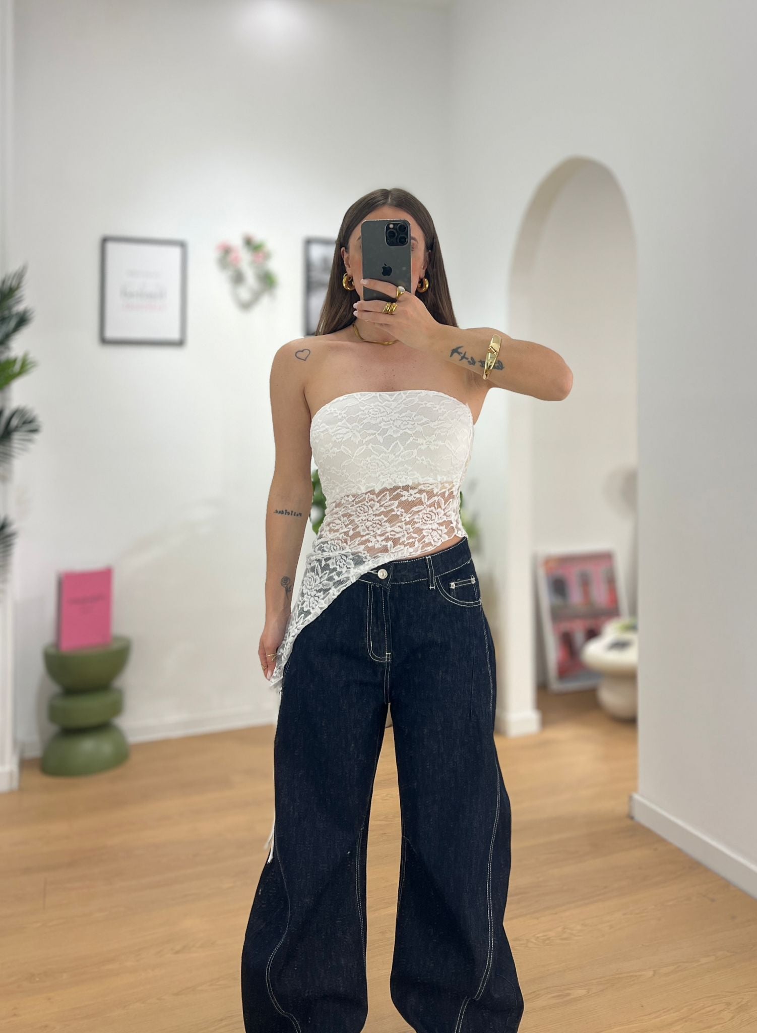 Top da donna a fascia in pizzo tessuto elasticizzato ma veste regolarmente la propria taglia e giusy indossa taglia S
