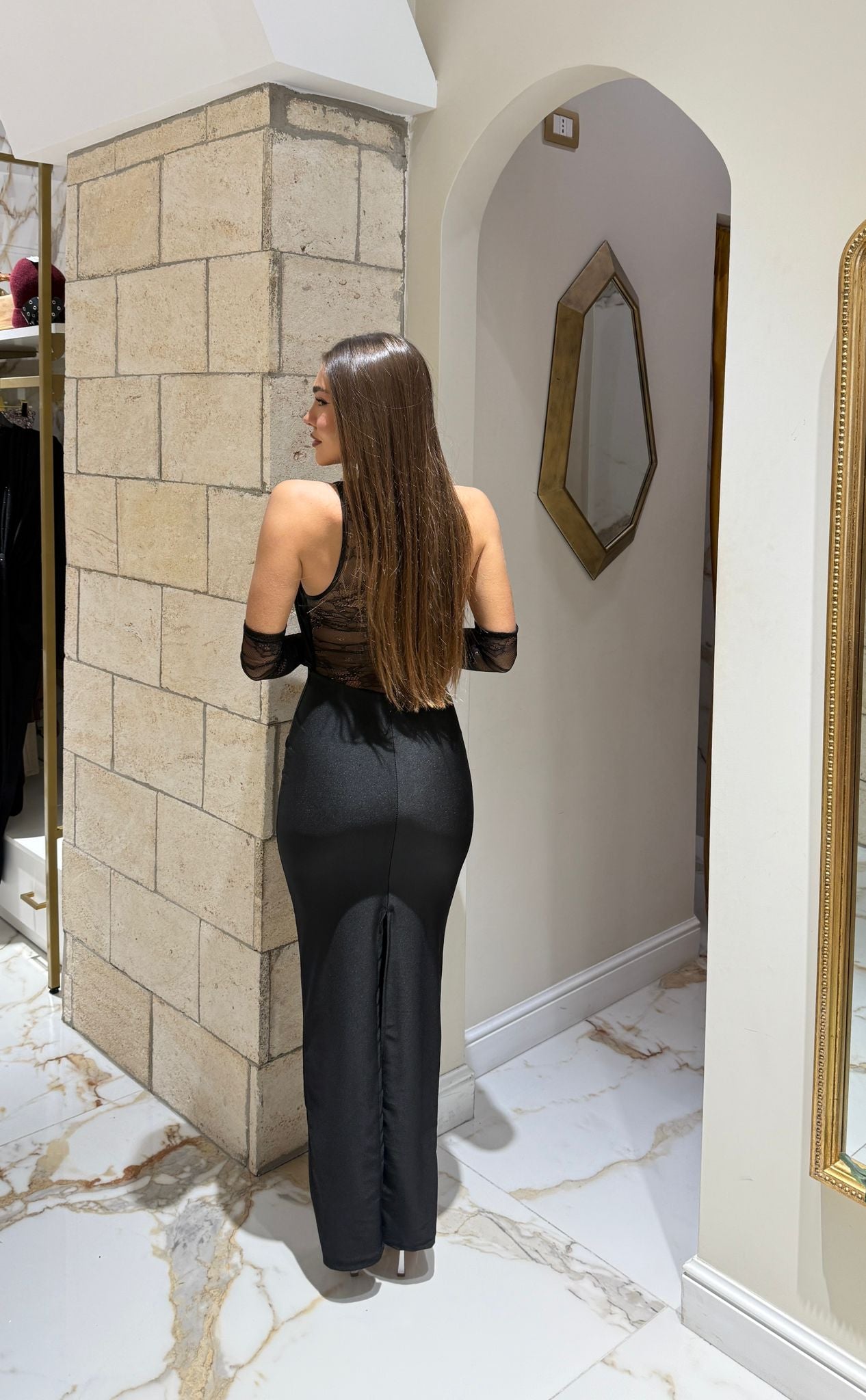 Abito da donna in lycra con particolari ricamo e guanti compresi, tessuto elasticizzato e con spacco sul retro della gonna e vestirà bene fino ad una M piena