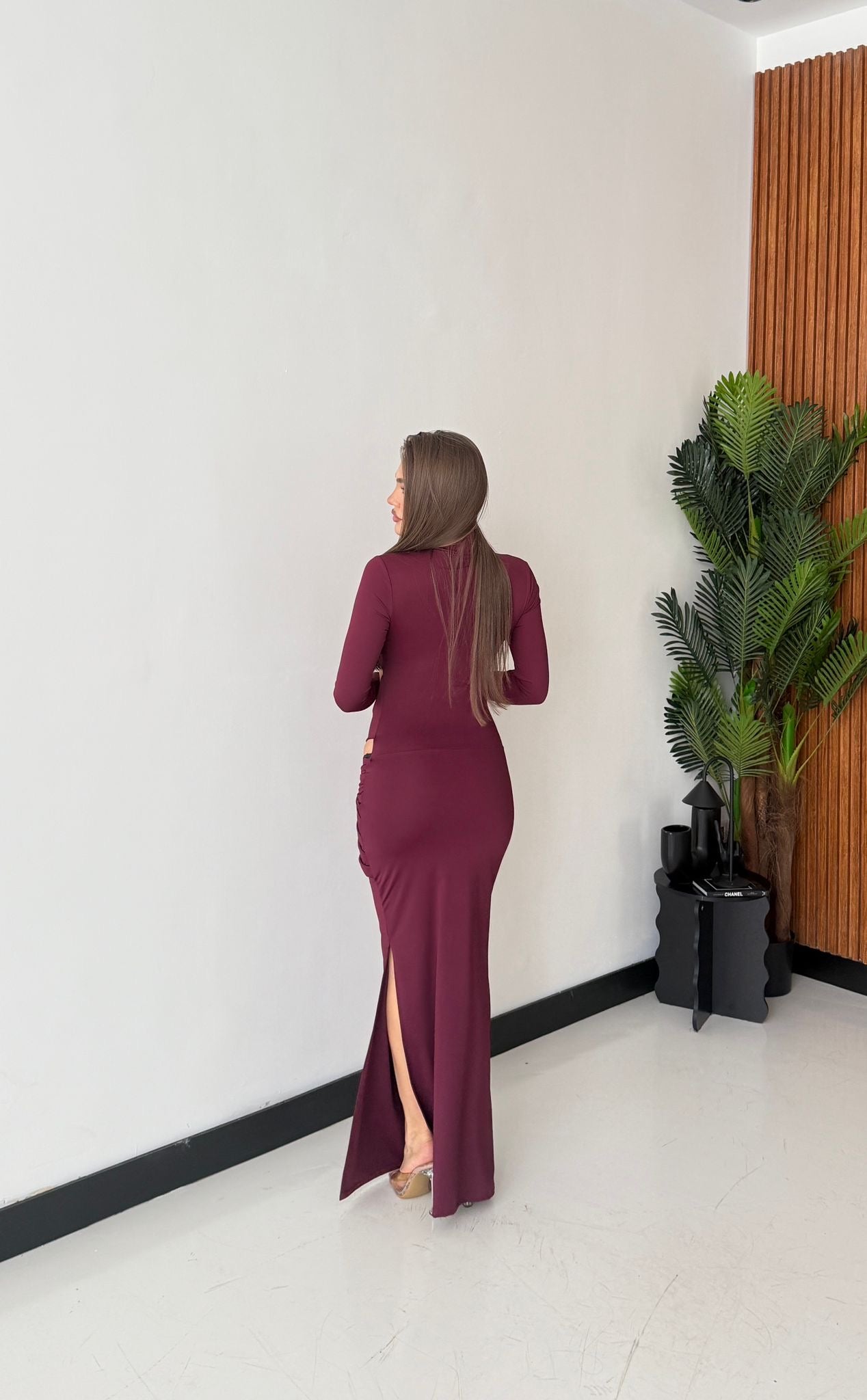 Abito da donna in lycra, tessuto elasticizzato, con colletto, scollo sul davanti, drappeggio in vita sul davanti, manica a guanto e spacco laterale. Taglia unica, veste bene fino ad una taglia M piena. La modella è alta 1,65 e pesa 52/53kg.