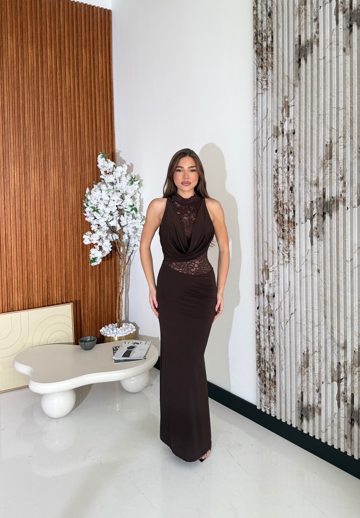 Abito da donna composto da parte superiore in pizzo con chiusura bottoncini sul retro del collo, mentre la parte posteriore dell abito è in tessuto cotone elasticizzato effetto lycra con spacco laterale. Vestira bene fino ad una M piena. La modella è ata 1,65 e pesa 52/53 kg