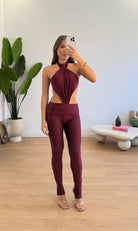Tuta da donna in lycra, tessuto elasticizzato. Composta da mezzo colletto e schiena scoperta. Taglia unica, veste bene fino ad taglia M.