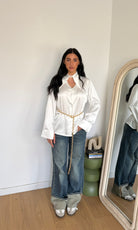 Camicia da donna effetto raso con vestibilita morbida e vestirà bene fino ad una M/L