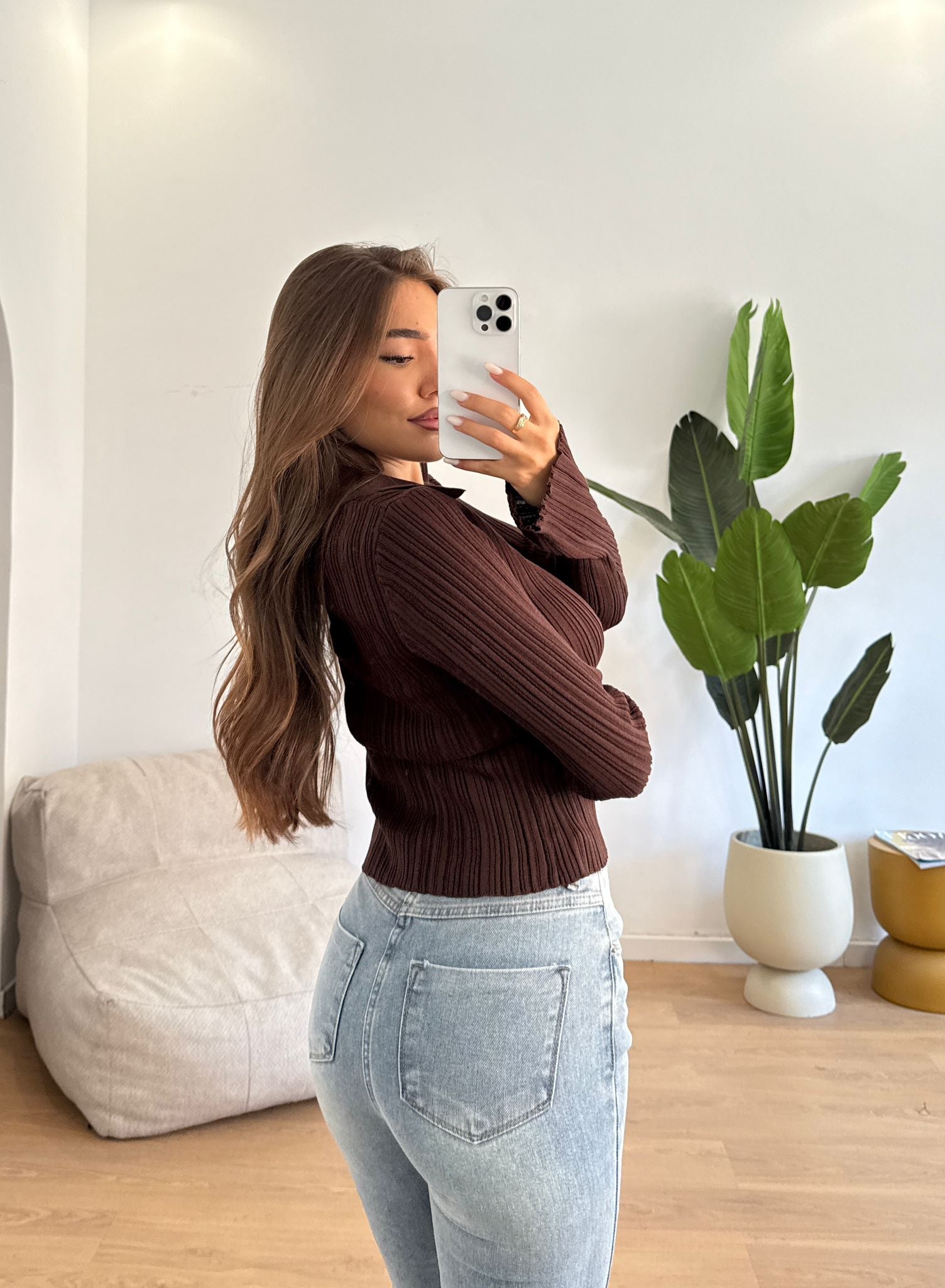 Cardigan da donna in filo tessuto elasticizzato e veste regolarmente la propria taglia e la modella indossa taglia S/M
