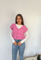 Gilet da donna in lana rasata con chiusura bottincini vestibilità over e vestirà bene fino a d una M/L