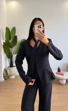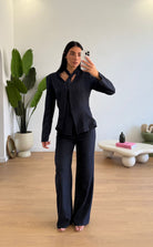 Coordinato da donna composto da giacca foderata internamente e con spalline imbottite, pantalone con elastico in vita sul retro e veste bene fino ad una M/L