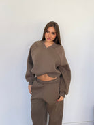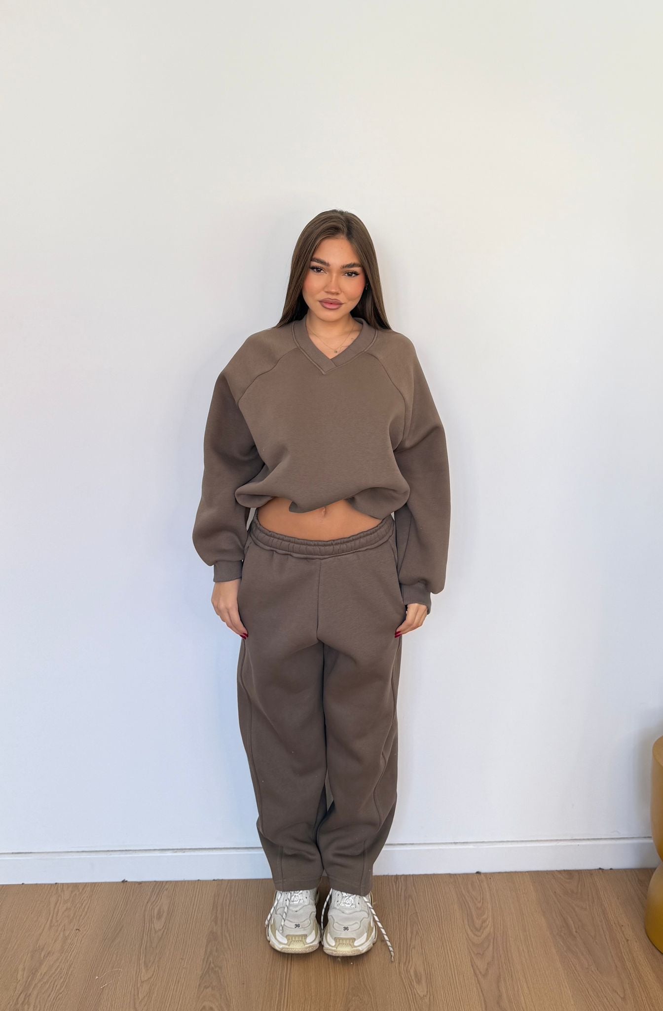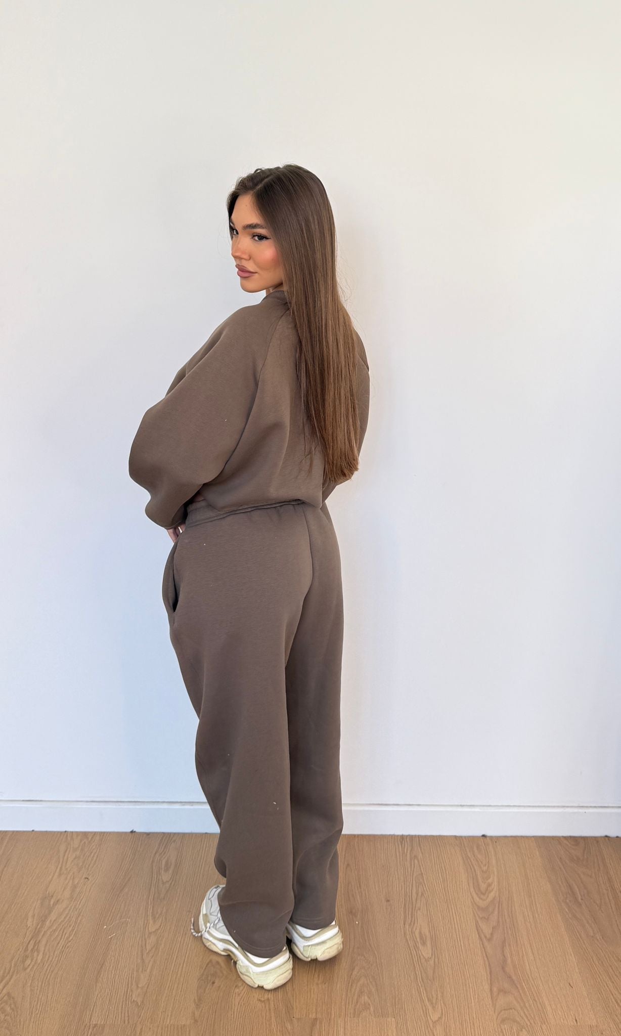 Coordinato composto da felpa modello over, con elastico sul fondo e polsini sulle maniche, e da pantalone modello over con elastico in vita. Vestibilità fino ad una taglia M/L. Entrambi i capi sono felpati internamente.