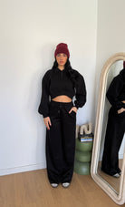 Felpa da donna crop felpata internamente con polsini, elastico in vita e cerniera sullo scollo. Taglia unica, veste  bene fino ad una M piena.