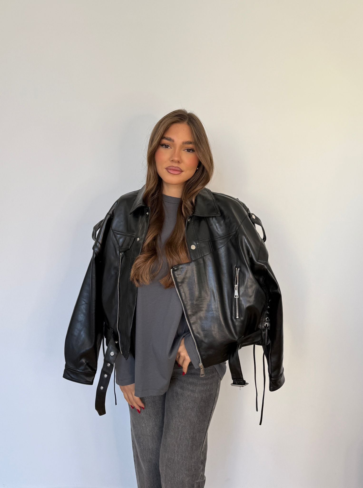 Giubbino da donna in ecopelle foderato internamente, top quality e veste regolarmente la propria taglia e la modella indossa taglia S/M