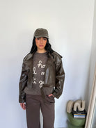 Giubbino da donna in ecopelle semi lucida, foderato internamente, top quality e veste bene fino a d una M/L