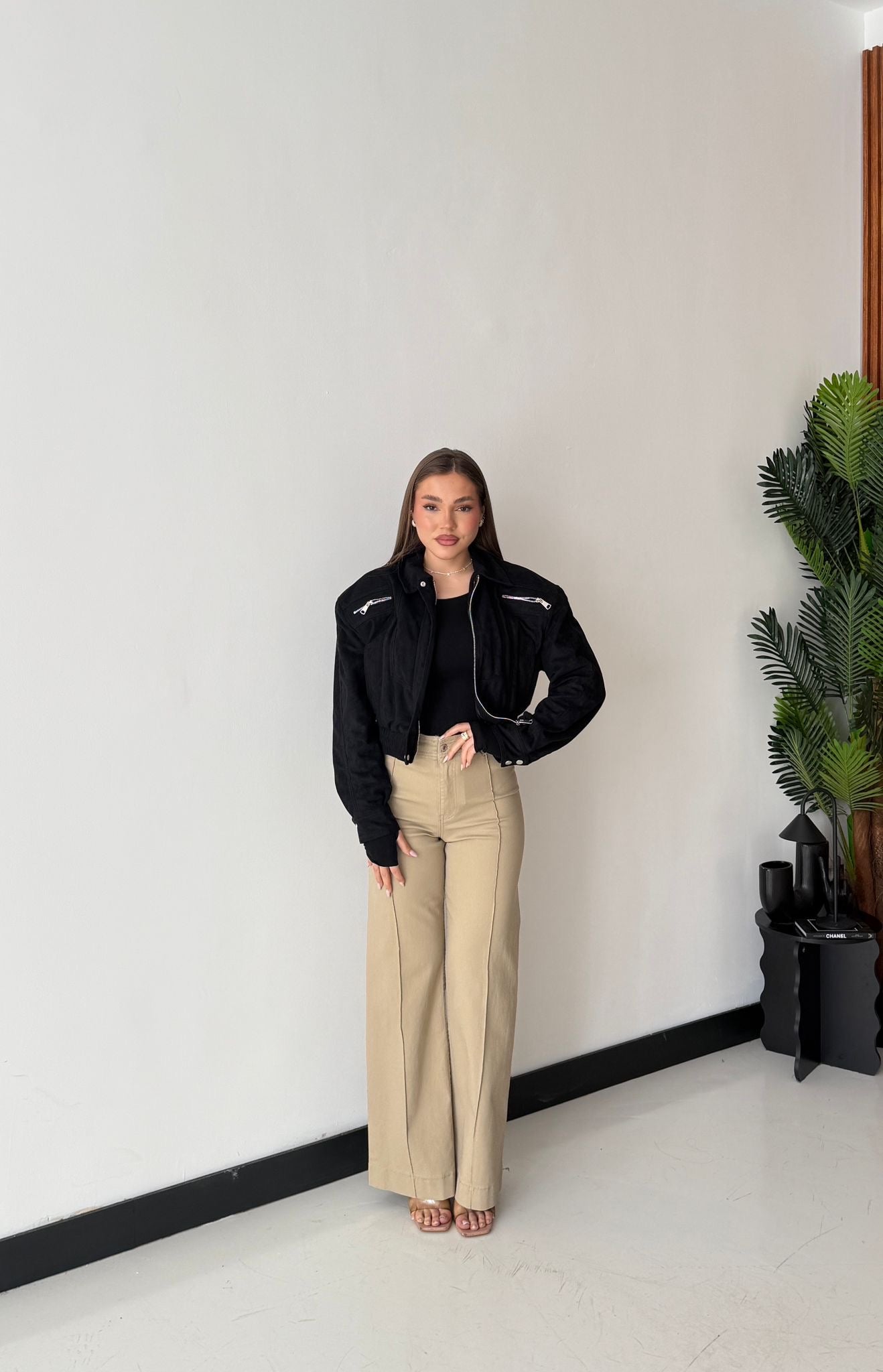 Giubbino da donna in camoscio foderato internamente con chiusura zip sul davanti e vestirà bene fino ad una M/L