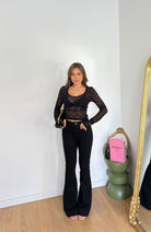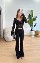 Jeans da donna a zampetta tessuto elasticizzato, vita alta e push-up sul retro, veste regolarmente la propria taglia e Giusy indossa taglia Xs