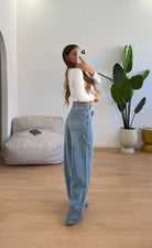 Jeans da donna in denim in tela fissa e veste regolarmente la propria taglia e la modella indossa taglia XS