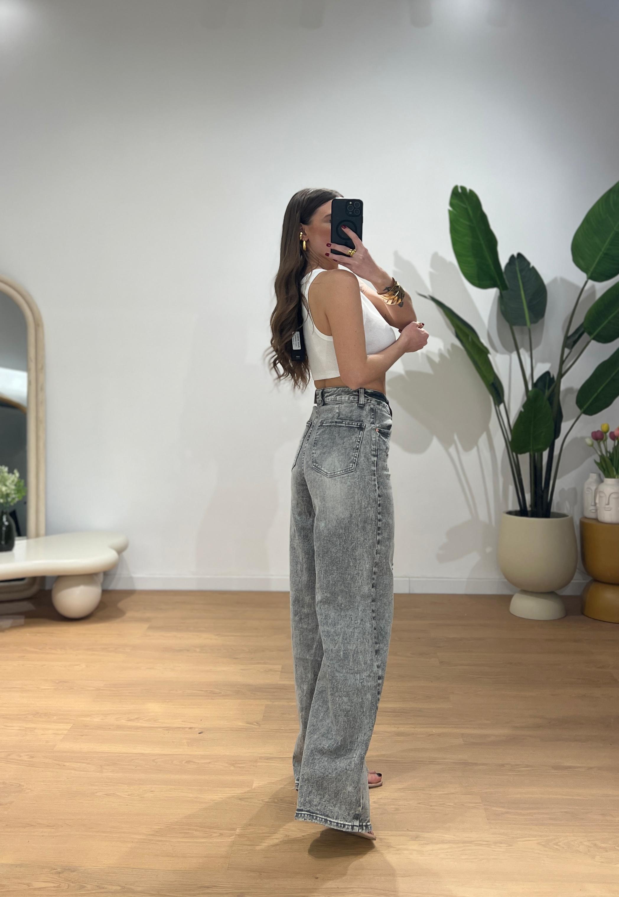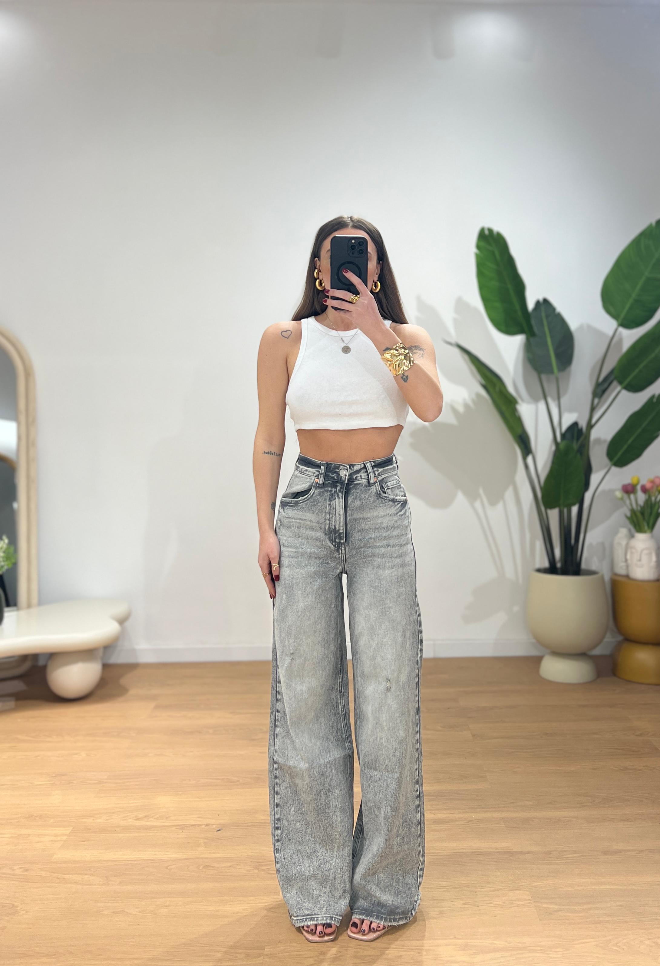 Jeans da donna in denim grigio modello a gamba dritta, tessuto elasticizzato ma veste regolarmente la propria taglia e giusy indossa taglia XS