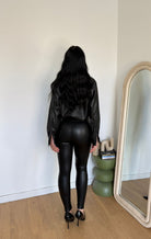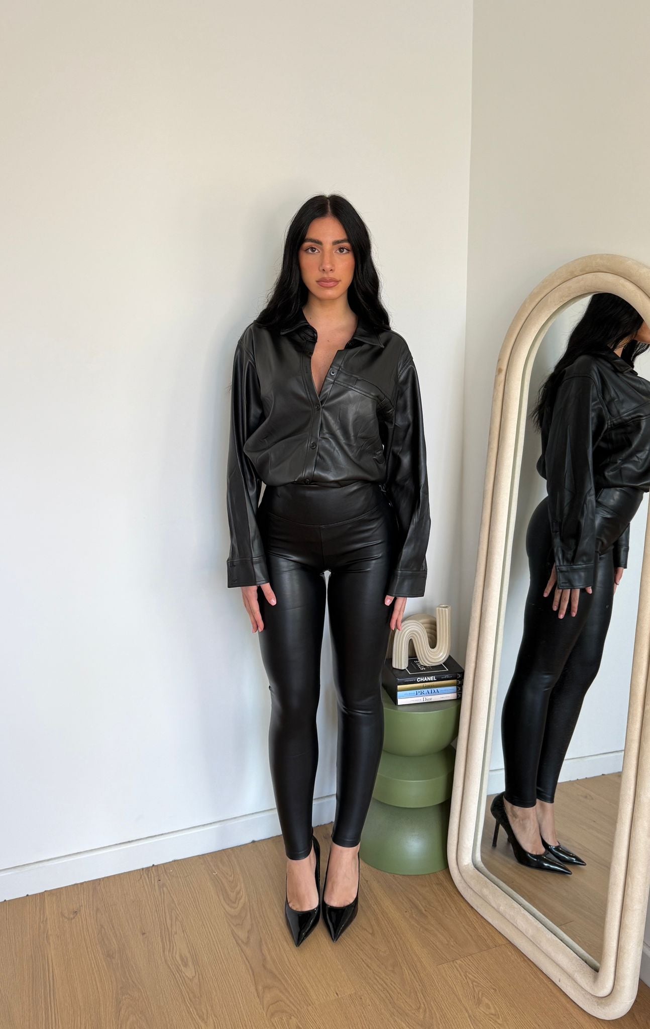 Leggings in ecopelle, leggermente felpato internamente. Giusy indossa la taglia XS.