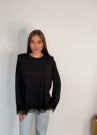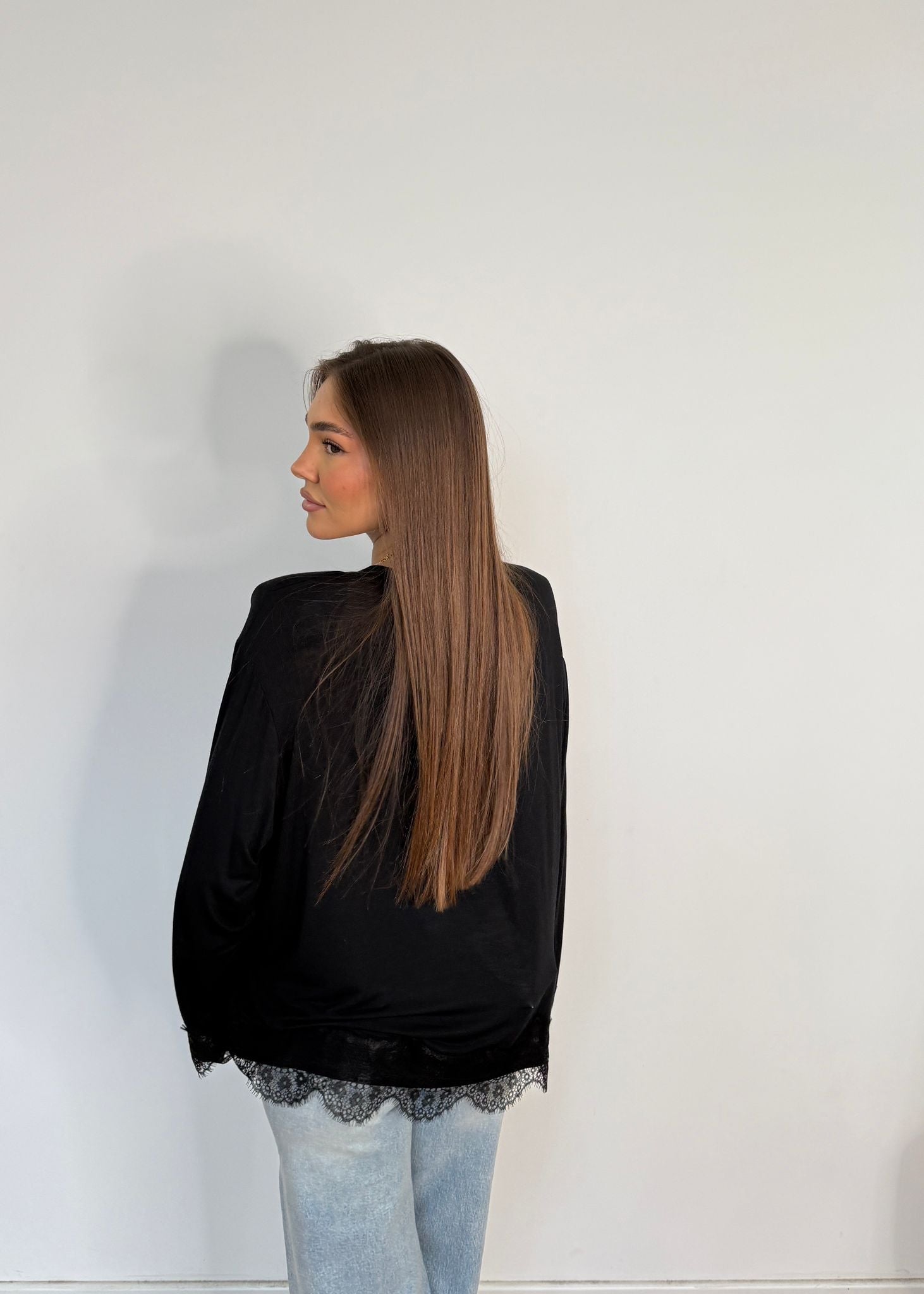 Maglia da donna in cotone leggero con spalline imbottite e merletto veste bene fino ad una M/L