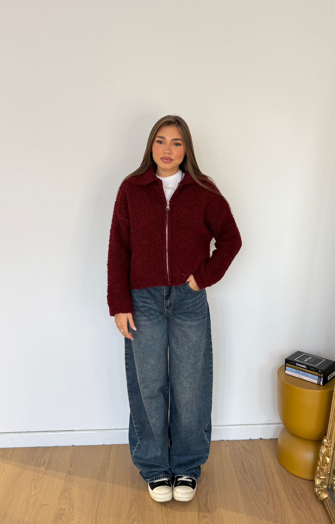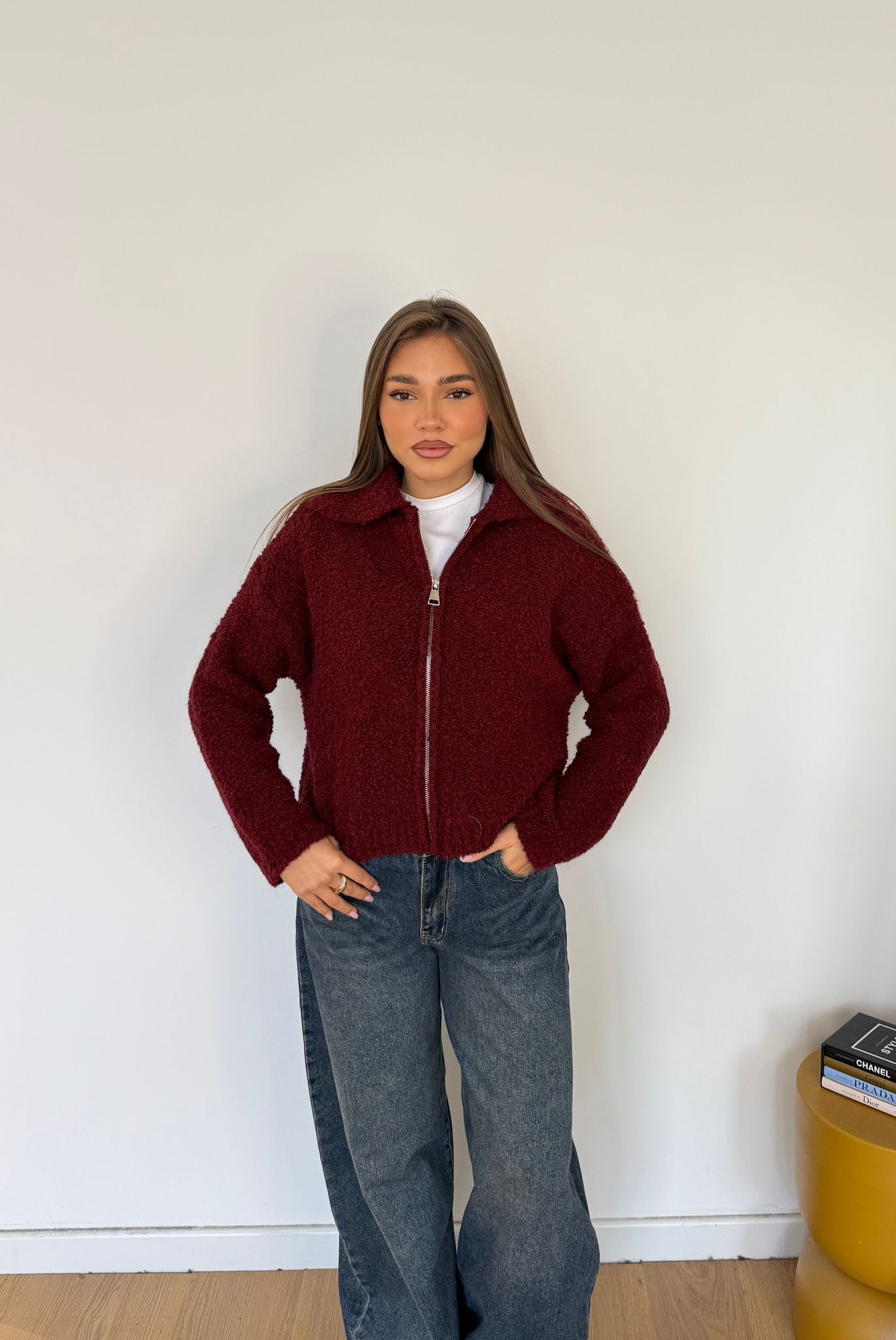 Maglione da donna effetto teddy tessuto elasticizzato con chiusura zip sul davanti e vestirà bene fino ad una M/L piena
