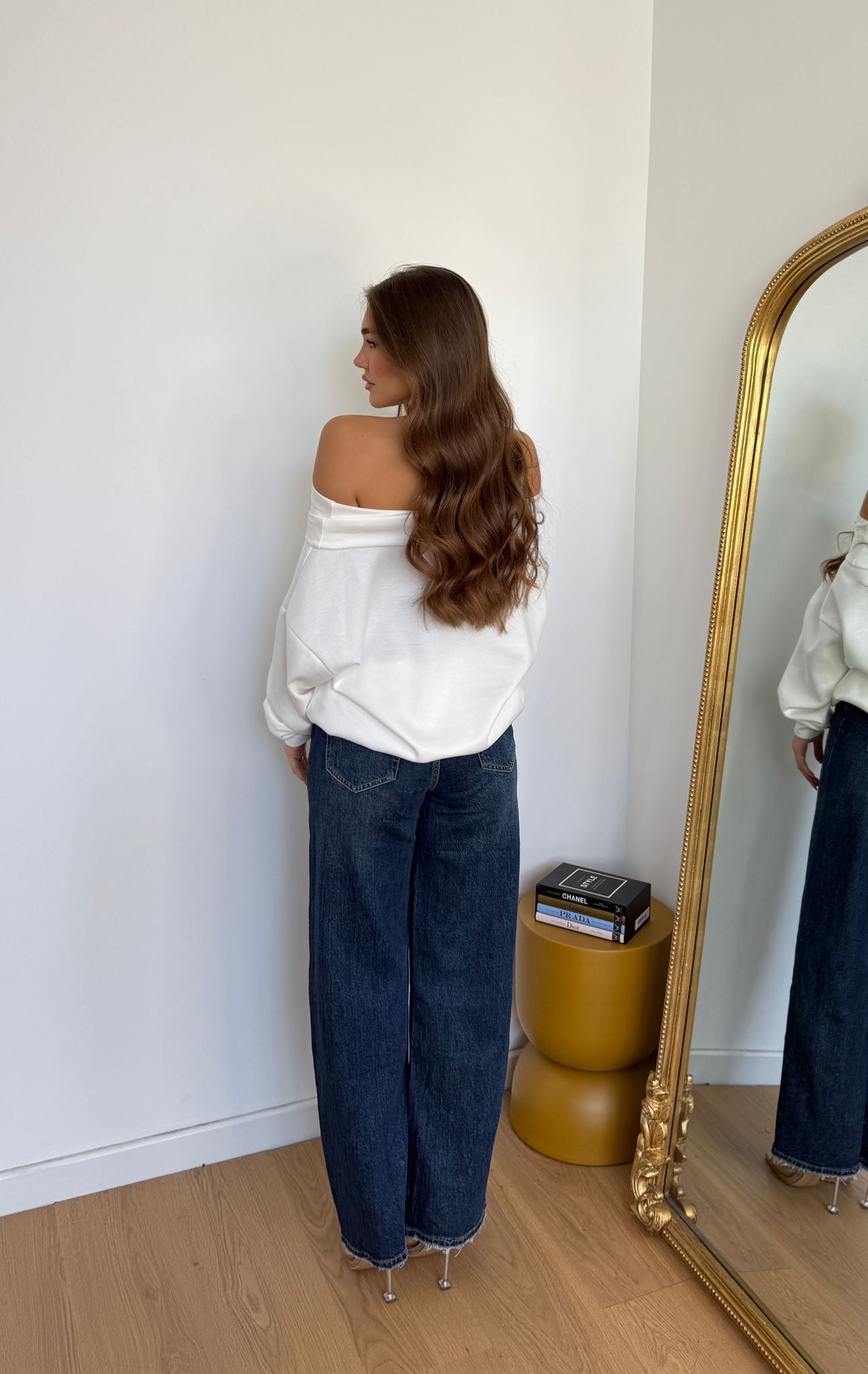 Maxi felpa da donna con scollo a barca, vestibilità oversize con polsini e vestirà bene fino ad una M/L