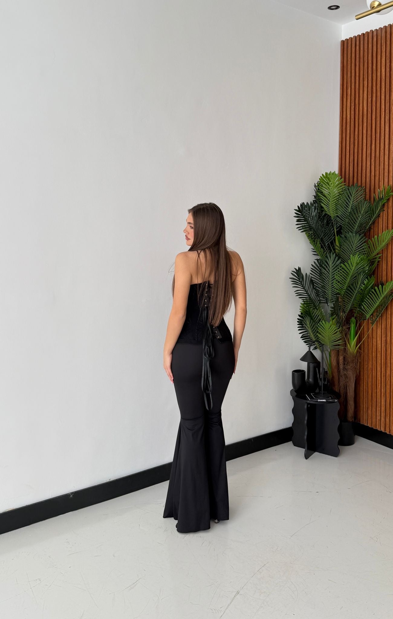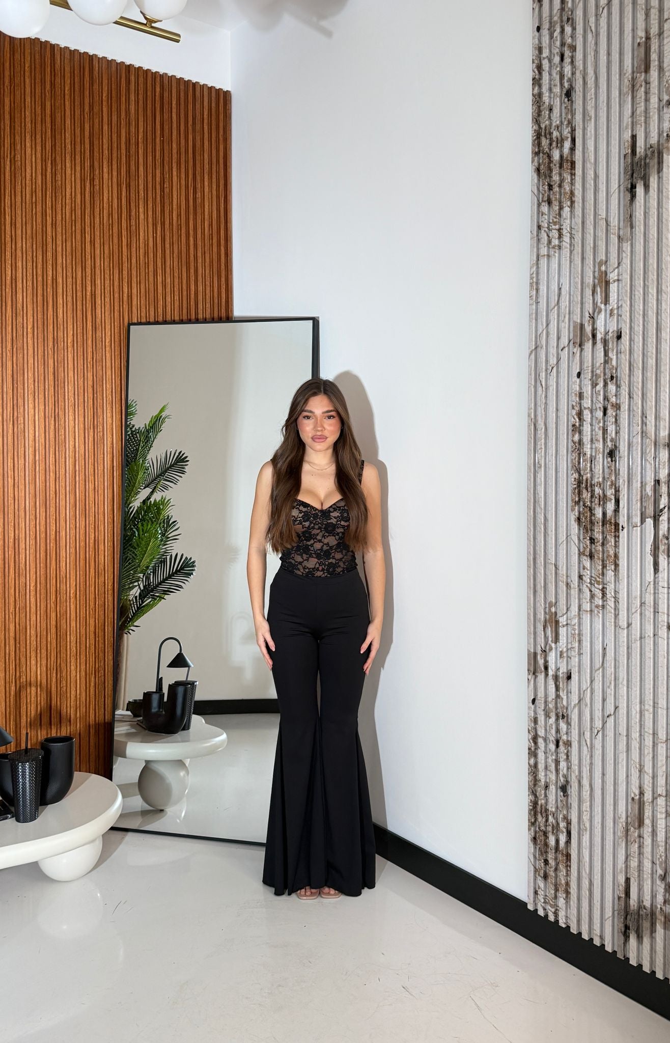 Pantalone da donna in lycra con elastico in vita, modello a gamba pipistrello molto largo. Tessuto elasticizzato e veste bene fino ad una M/L. La modella è alta 1,65 e pesa 52/53 kg.