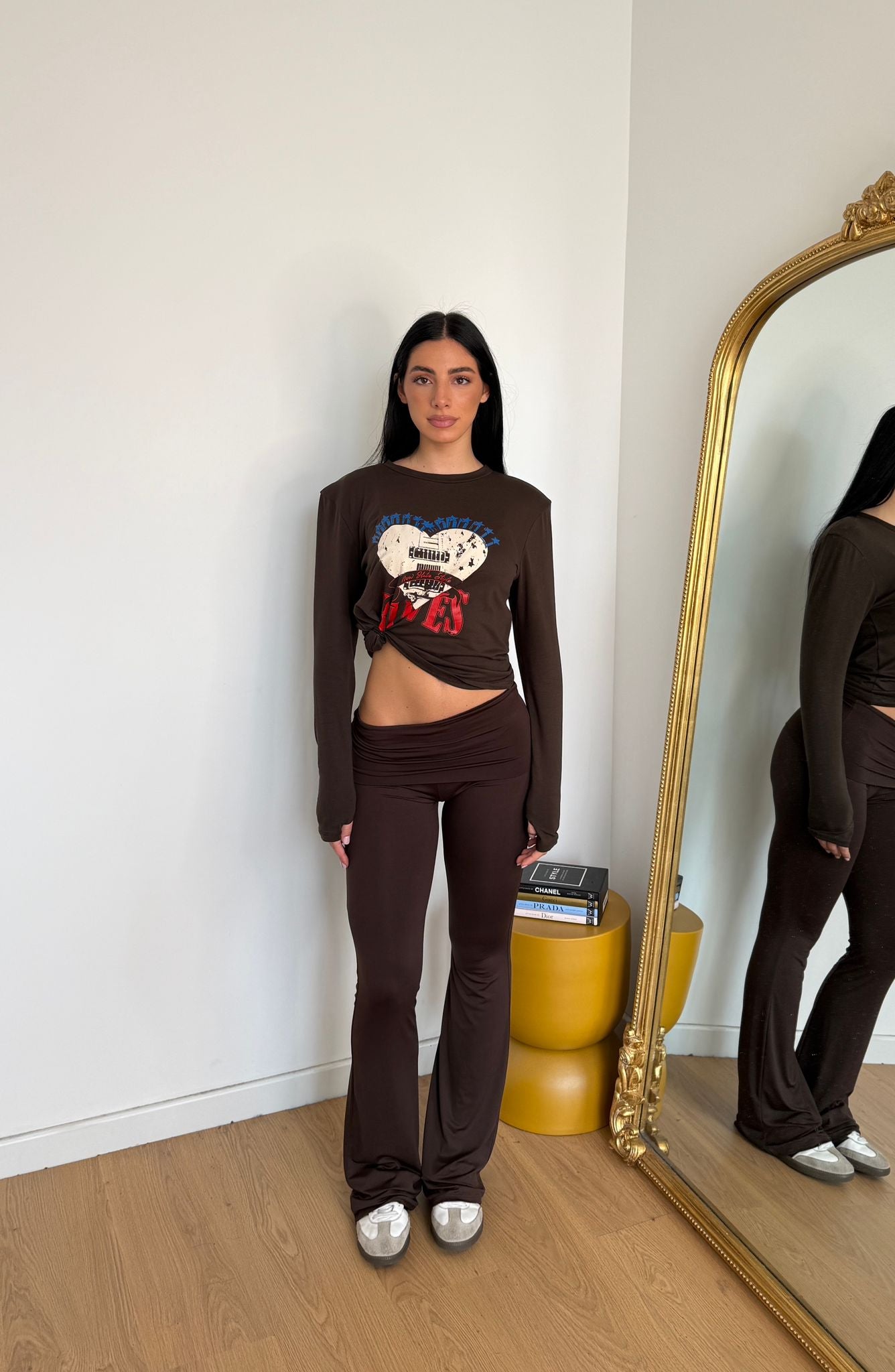 Pantalone da donna in lycra a zampa tessuto elasticizzato e vestirà bene fino ad una 42 piena
