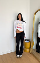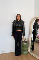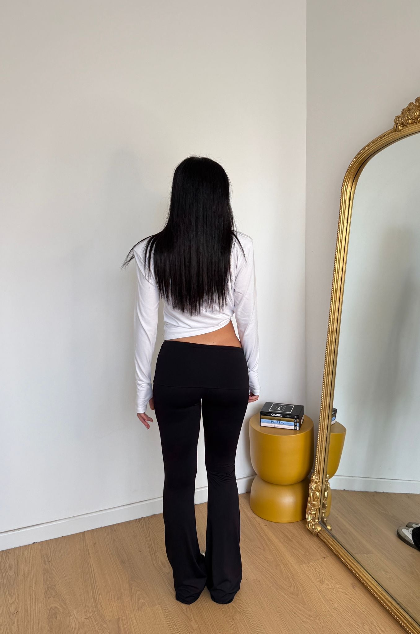 Pantalone da donna in lycra a zampa tessuto elasticizzato e vestirà bene fino ad una 42 piena