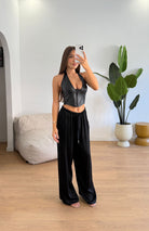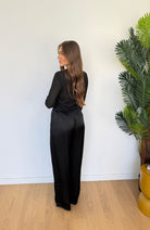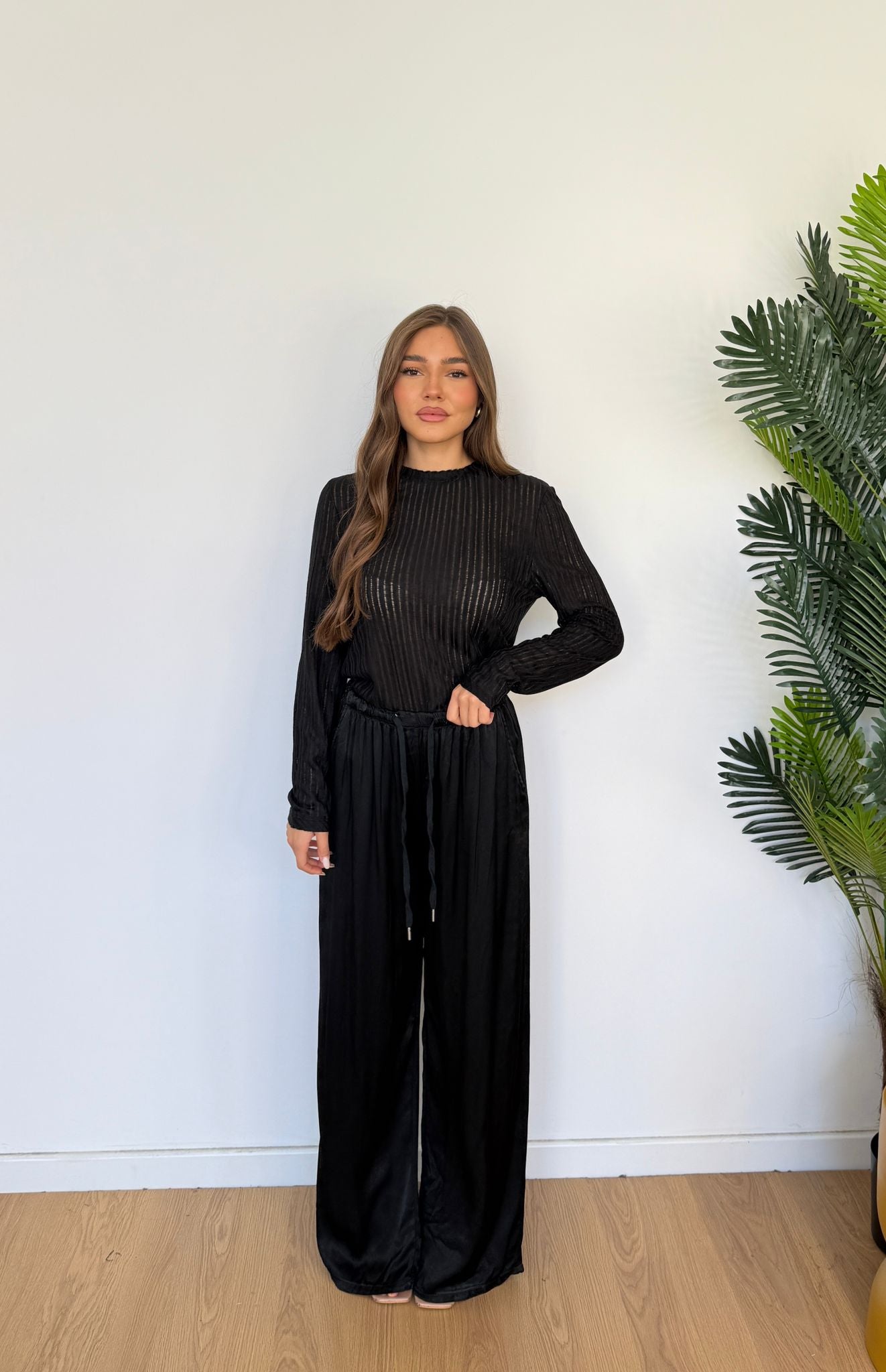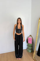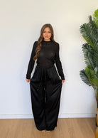 Pantalone da donna tessuto morbido con elastico in vita e laccio regolabile, effetto satin e vestirà bene fino ad una M/L