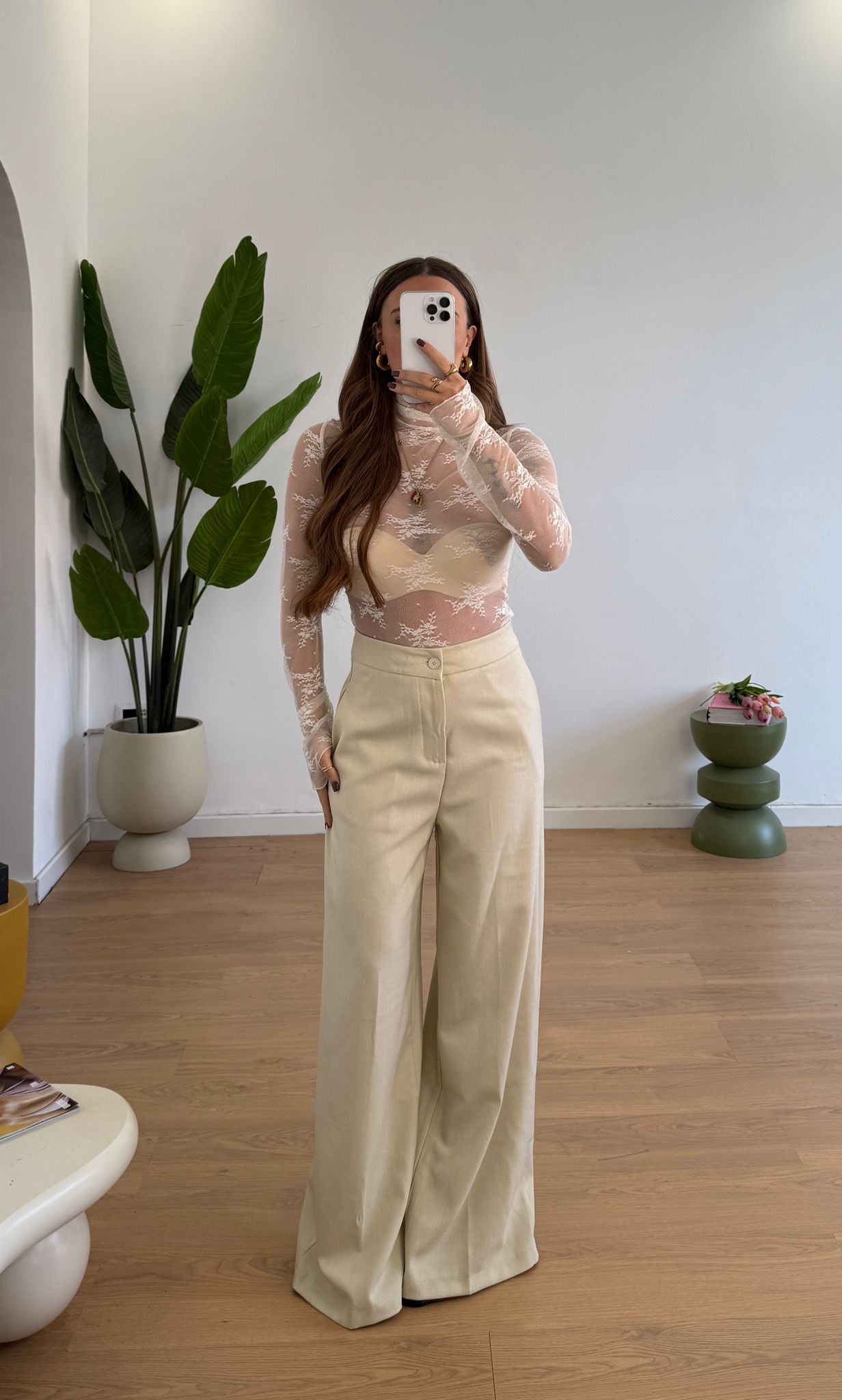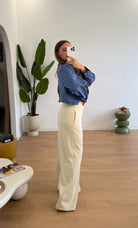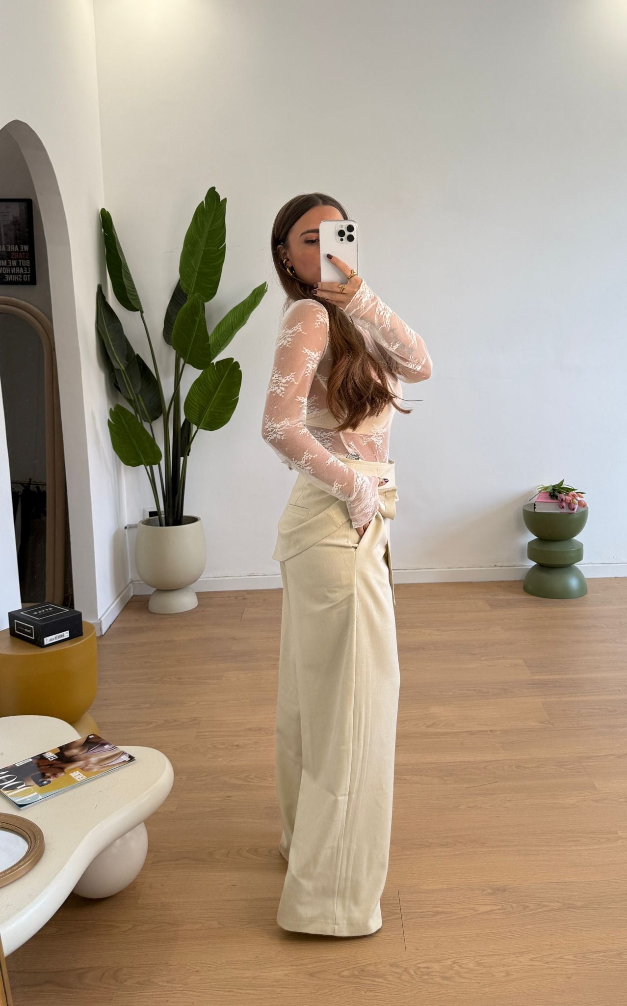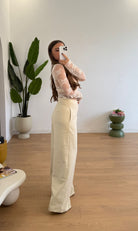Pantalone da donna con bustino sovrapposto e veste regolarmente la propria taglia e la modella indossa taglia S
