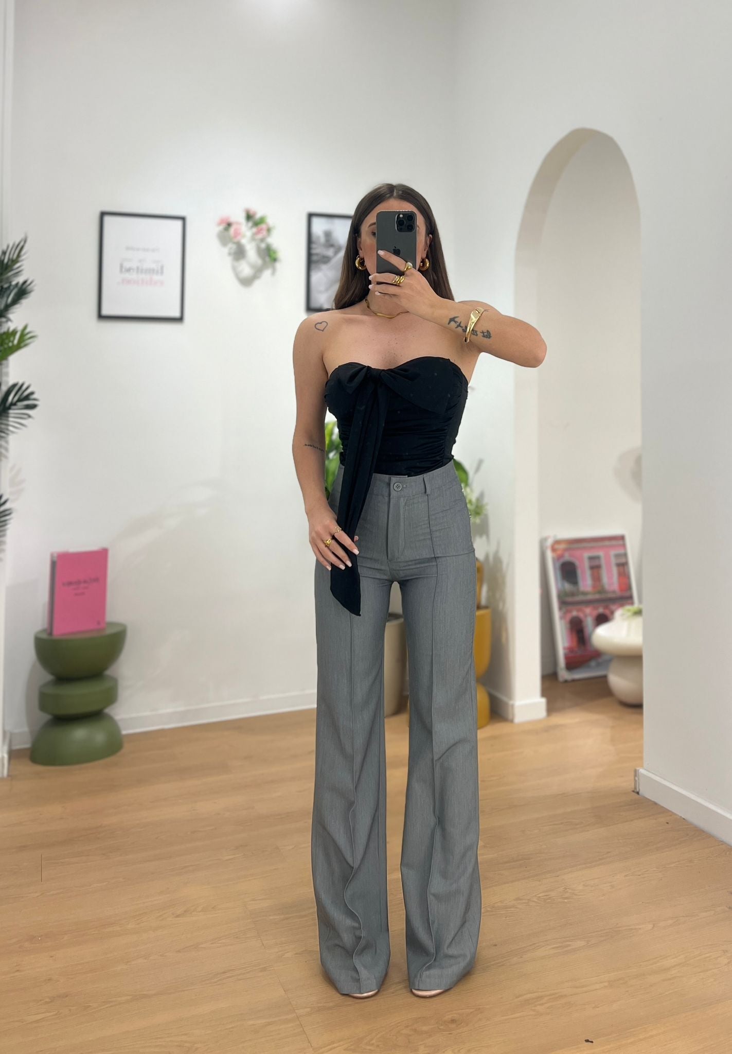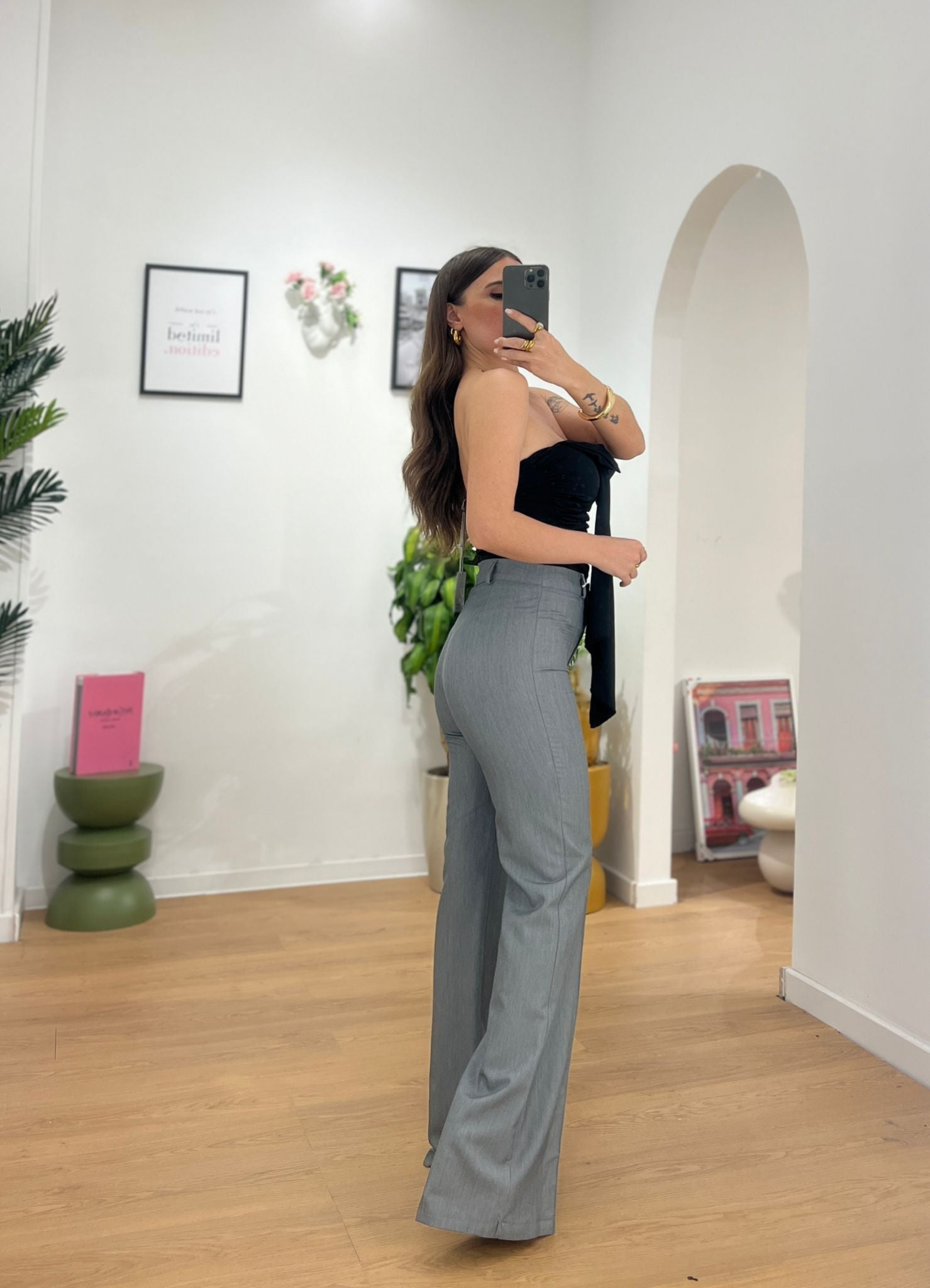 Pantalone da donna vita alta tessuto cotone leggero e veste regolarmente la propria taglia e Giusy indossa taglia S
