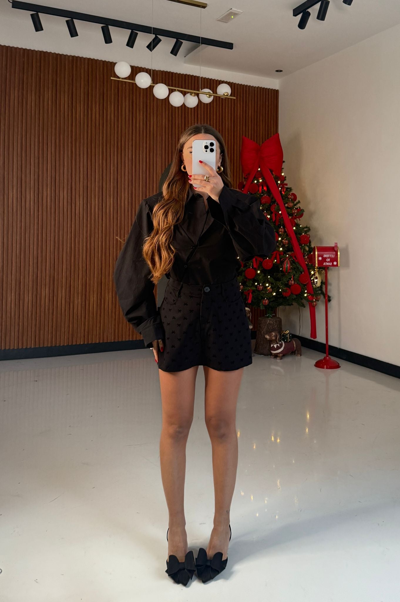 Shorts da donna in cotone top quality con fantasia fiocchi stampata, veste regolarmente la propria taglia e la modella indossa taglia S