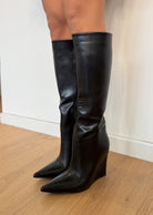 Stivali da donna in ecopelle con tacco alto 5 cm.