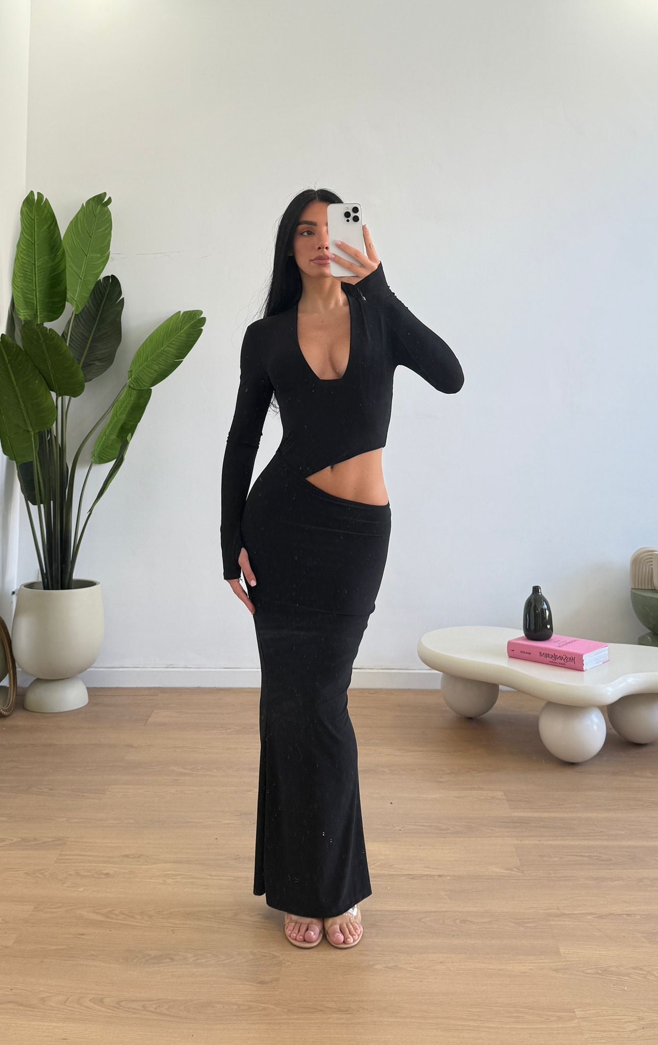 Abito da donna tessuto elasticizzato con apertura laterale sul fianco e spacco sul retro e vestirà bene fino ad una M/L