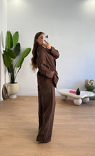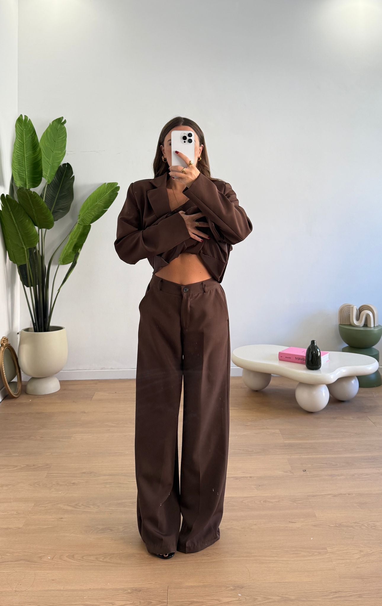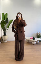 Coordinato da donna composto da giacca a doppio petto con spalline imbottite e foderata internamente mentre il pantalone ha l estitico in vita sul retro e ha una vestibilità morbida sulle gambe e vestirà bene fino ad una M/L