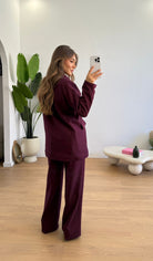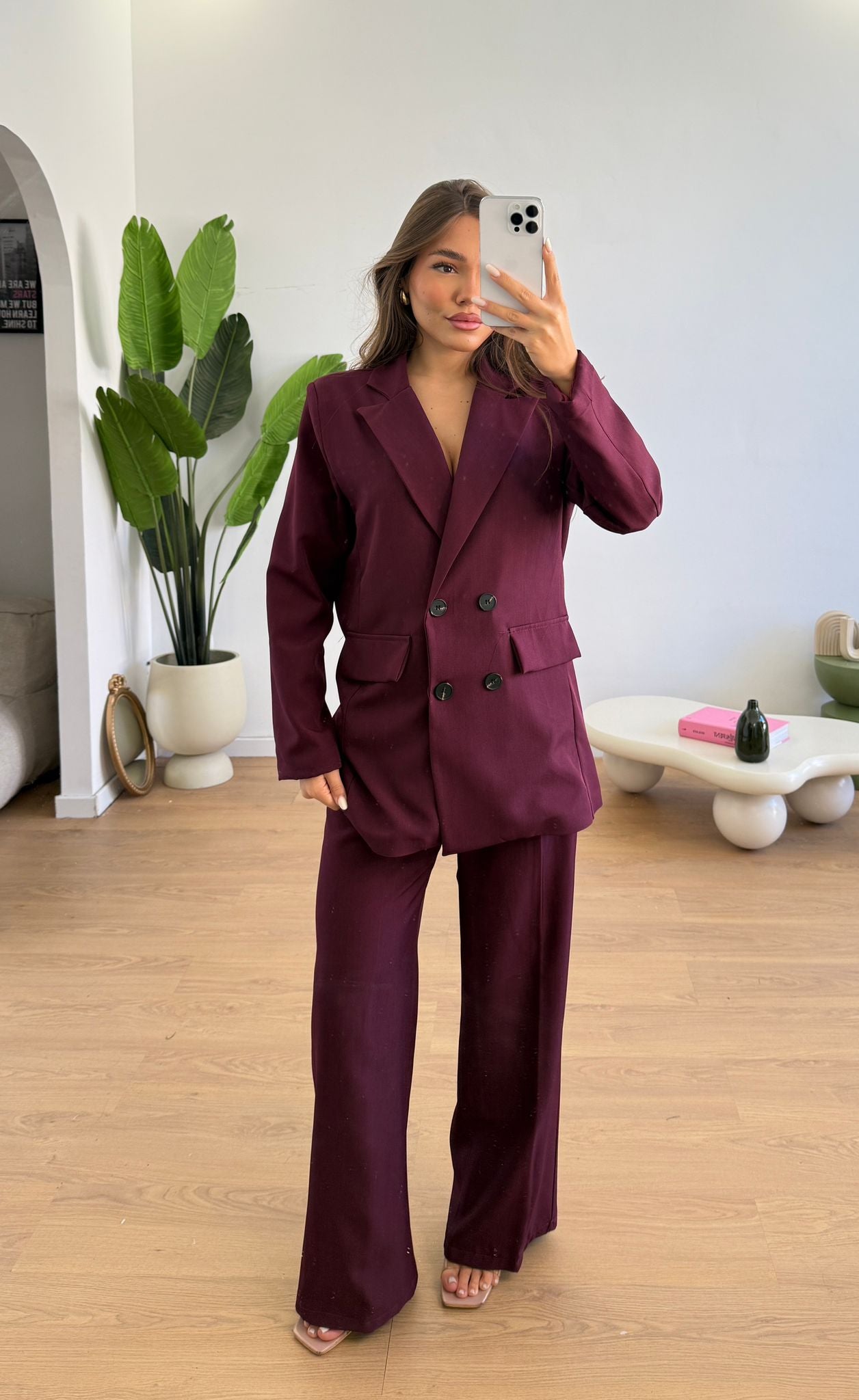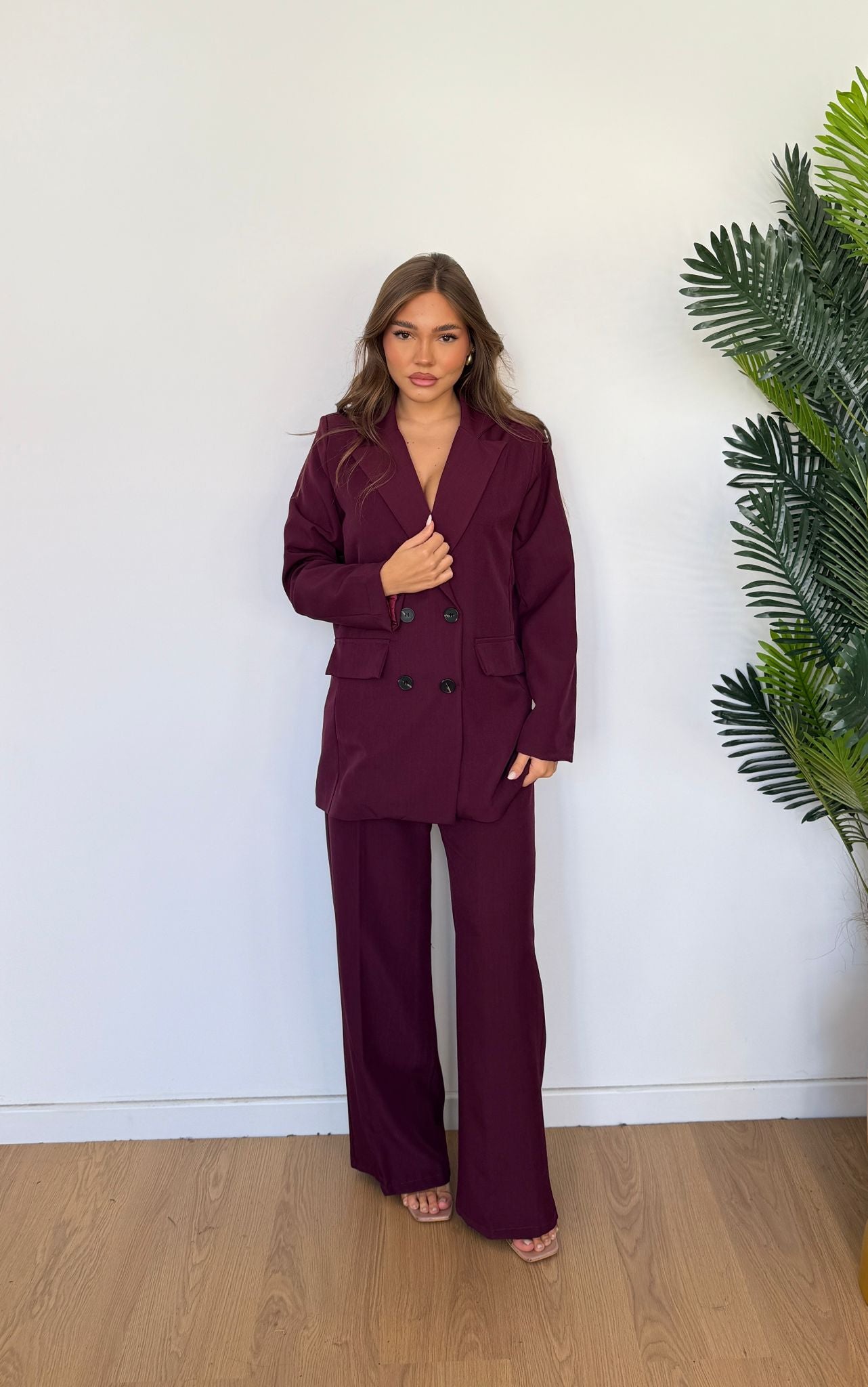 Coordinato da donna composto da giacca a doppio petto con spalline imbottite e foderata internamente mentre il pantalone ha l estitico in vita sul retro e ha una vestibilità morbida sulle gambe e vestirà bene fino ad una M/L