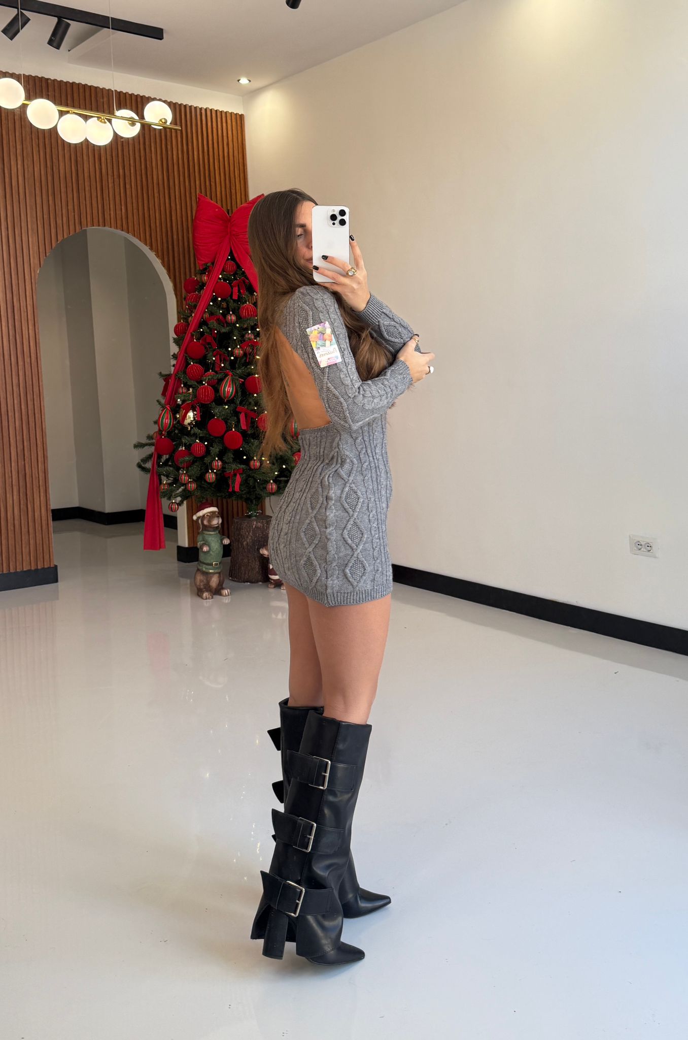 Vestitino da donna in lana intrecciata con schiena scoperta, tessuto elasticizzato e vestirà bene fino ad una M piena