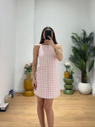 Abitino da donna by Lumina top quality modello tweed con scollo squadrato e chiusura zip sul retro, veste regolarmente la propria taglia e Giusy indossa taglia S